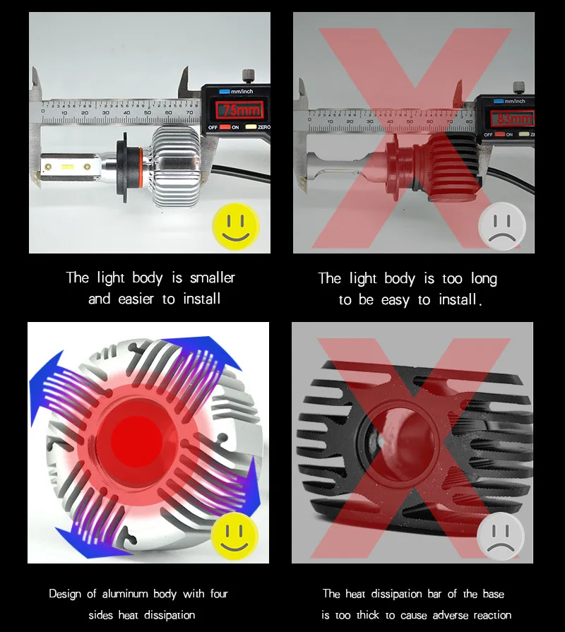 Название: светодиодный автомобильный фонарь Серия: F40B Цветовая температура: от 6000 К до 6500 К Мощность: 50 Вт Материал: авиационный алюминиевый сплав 6063 Грамм: около 48-62 г/шт Световой поток: 6400LM Срок службы: 50000/ч Вход напряжение: dc9v-32v Нормальное напряжение: 12/24v Рабочая температура: -40 °C-105 °C Принцип рассеивания тепла: активное рассеивание тепла воздушным охлаждением Скорость запуска: 0 секунд полный светильник, поддержка стробоскопа Эти модели: 9005/9006/9012 / H1 / H4 H7 / H11