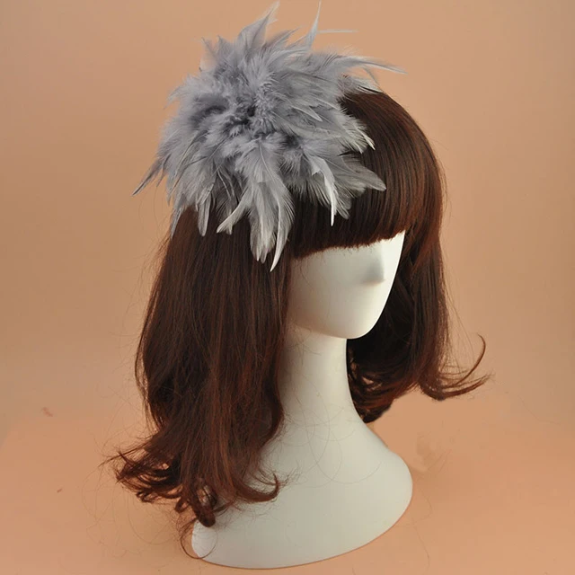 Головной убор, заколка для волос, цветок, новинка, брошь, модный нагрудник, Большие Перья, цветы, свадебные заколки, аксессуары для волос, черный/серый