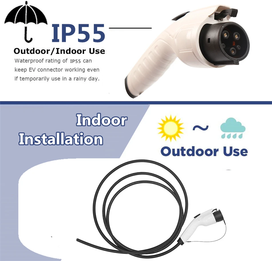 Информация о продукте: • Модель: Тип 1 SAE J1772 • Ток зарядки: 16A / 32A • В поставке Напряжение: однофазный 110V-250V • Рабочая температура: -30 °C ~ + 50 °C