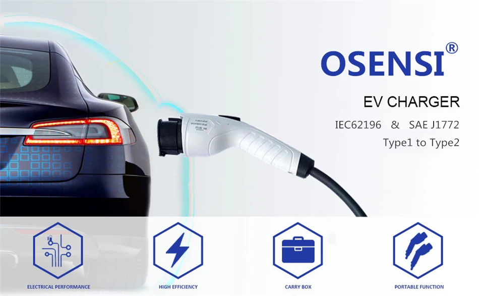 Зарядный кабель OSENSI 16A EV SAE J1772 тип 1-Тип 2 IEC 62196-2 EV зарядный штекер с кабелем 5 м электромобиль
