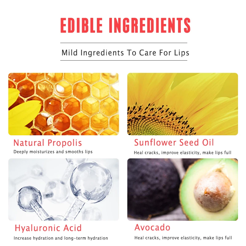 Он эффективно разглаживает трещины, улучшает эластичность кожи губ и делает губы пухлые.
