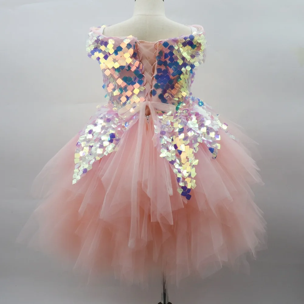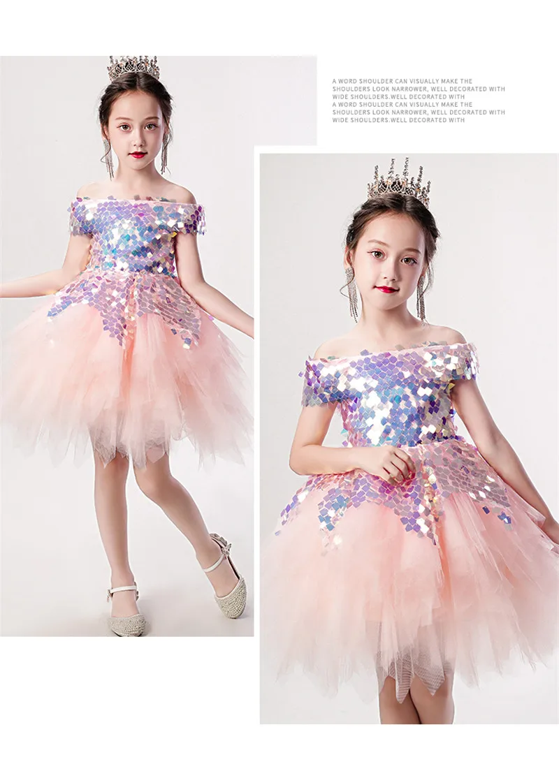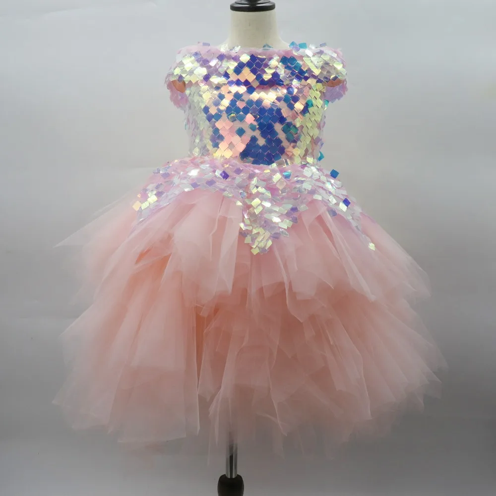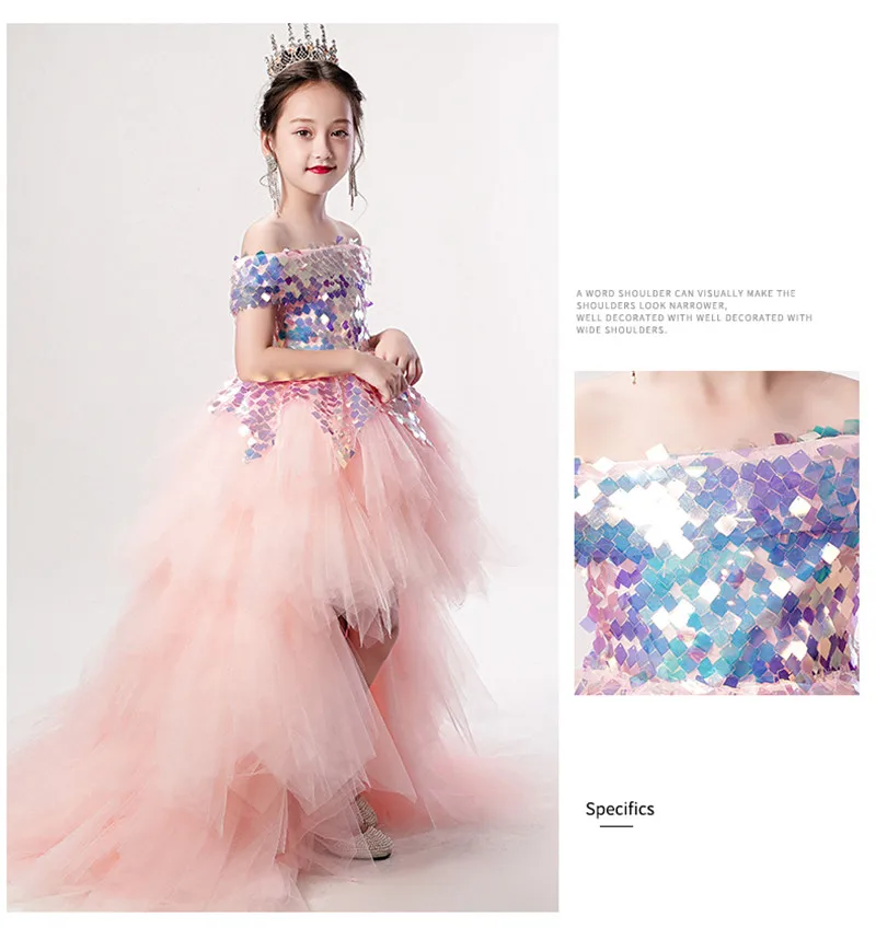 Свадебное платье с цветочным узором для девочек Детские платья Русалочки для подружки невесты Детские розовые платья-пачки с блестками эксклюзивные вечерние платья для девочек элегантные платья