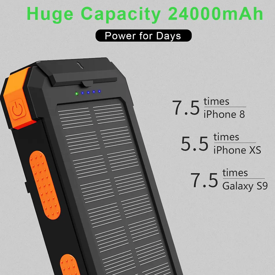 * Прочная конструкция для улицы. Компактный дизайн с крючком + карабином, так что вы можете свободно прикрепить его к рюкзаку в кемпинге, и он зарядится под прямым солнечным светом для чрезвычайных ситуаций.