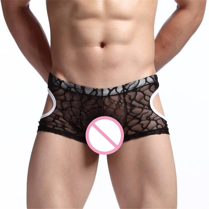 2020 мужские сексуальные полупрозрачные трусы-боксеры, мягкие кружевные цветочные дышащие экзотические боксеры, сексуальные шорты, трусы