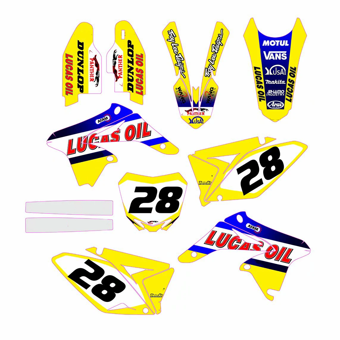 Мотоцикл наклейки на заказ полный инструмент графика фон наклейка количество блеск для команды для RMZ250 10-18