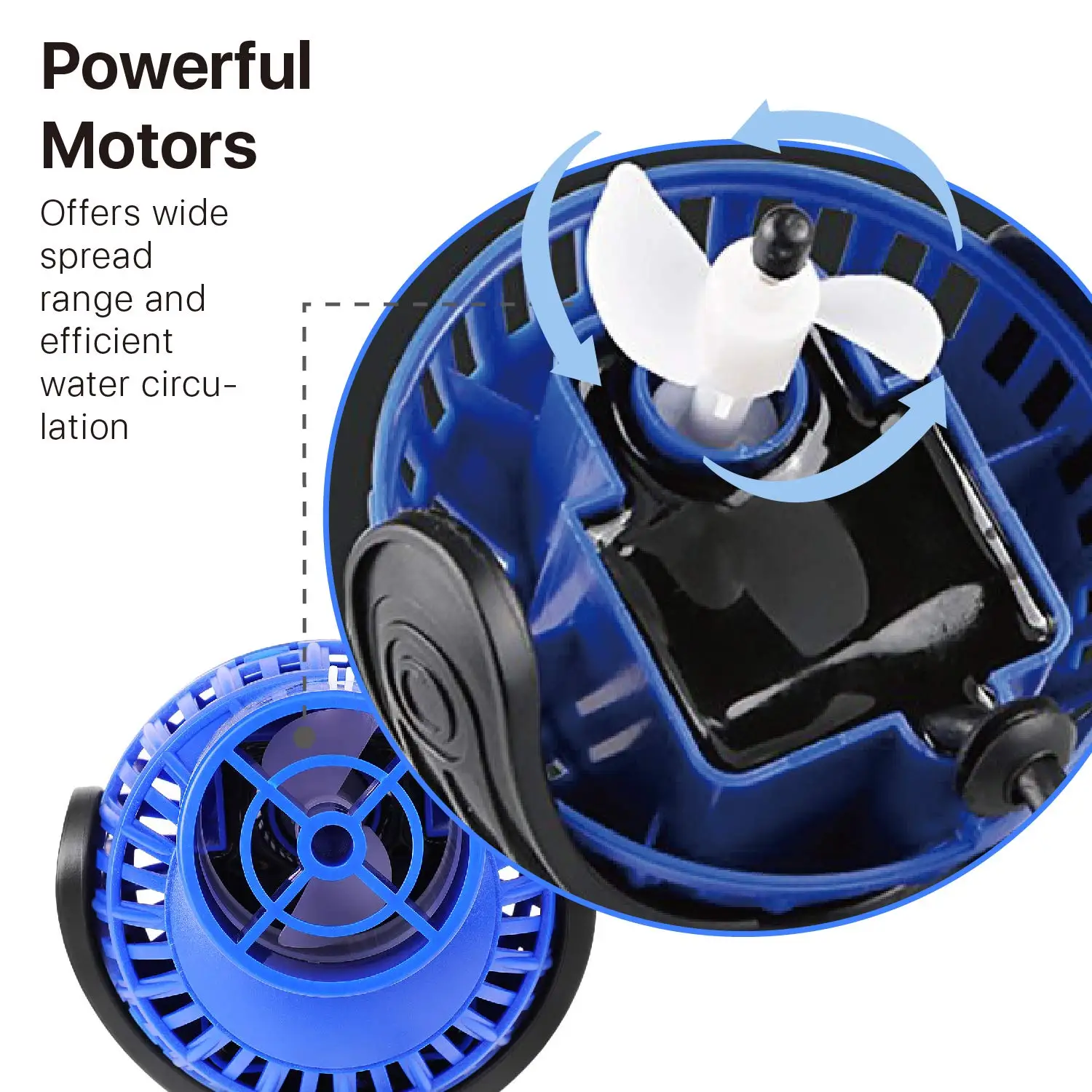 Регулируемая головка для оптимального направления потока. Обеспечивает постоянную циркуляцию воды, обеспечивая доступ каждой части аквариума к Насыщенной Кислородом воде.