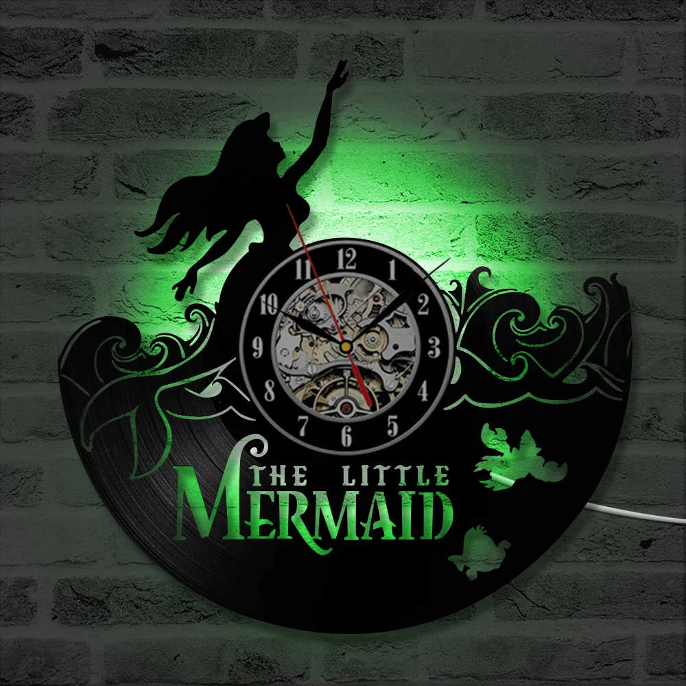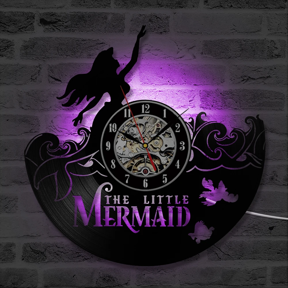 Виниловые настенные часы Русалочки Ариэль, светящиеся домашние декоративные настенные часы с подсветкой