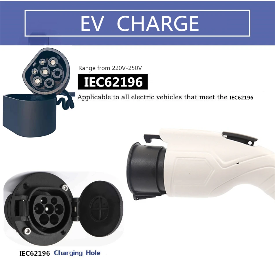 Информация о продукте: • Модель: Тип 2 IEC62196-2 • Ток зарядки: 16A / 32A • В поставке Напряжение 1: однофазный 110V-250V • Входное напряжение 2: трехфазный 380-415 В • Рабочая температура: -30 °C ~ + 50 °C
