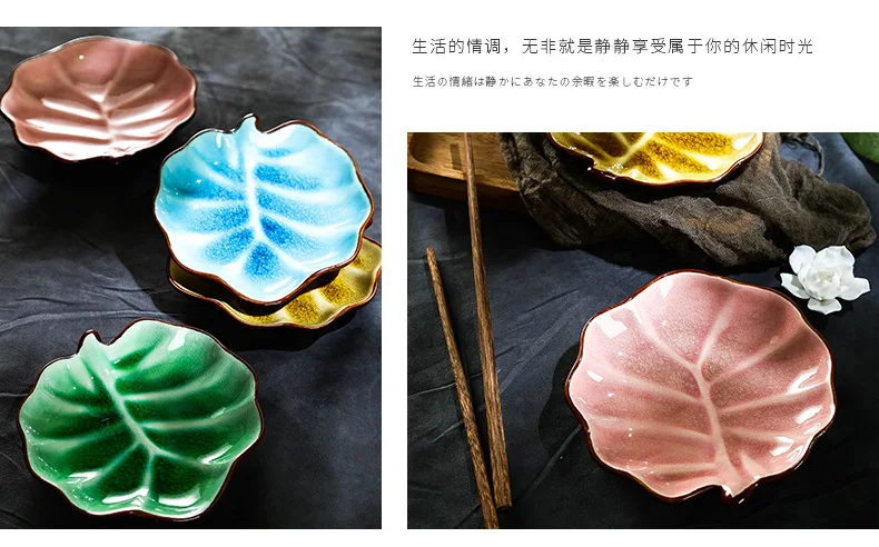 Японские трескающие блюдца Керамическая форма листьев цветка красочные фарфоровые соусы блюдца для домашнего ресторана блюдца