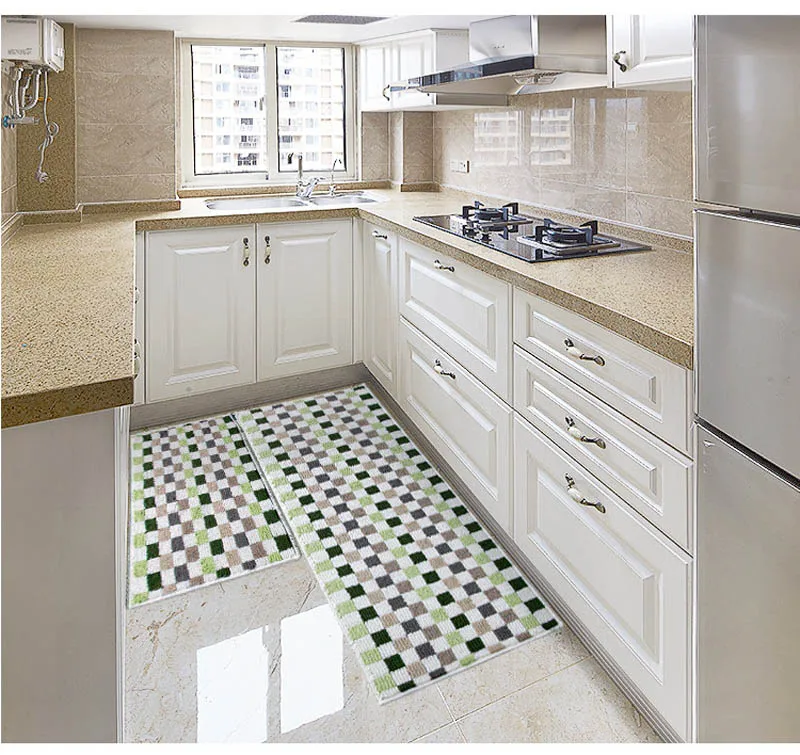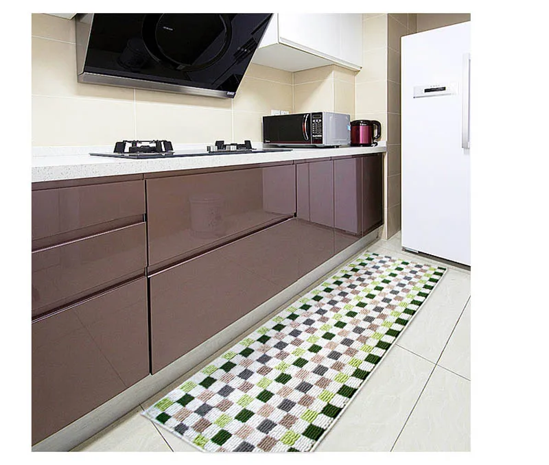 Параметры Наименование товара: кухонный коврик Материал: полипропилен Размеры: 45x60 см, 45x120 см, 50x80 см, 50x160cm Характеристики: противоскользящие, водонепроницаемые Функция: коврик в прихожую, дверной коврик, коврик для ванной и коврики Цвет: красный, зеленый, синий Примечание: возможна погрешность в 1-3 см и небольшая разница в цвете в интернет-магазине