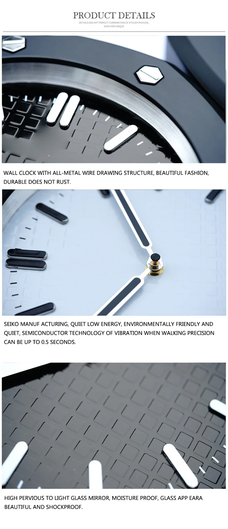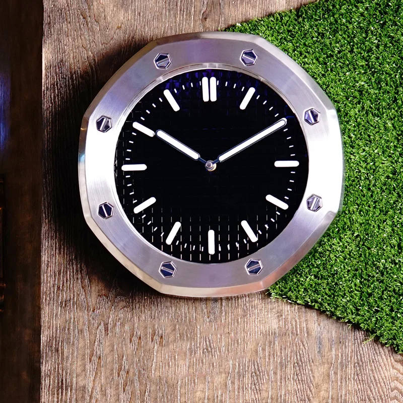 Особенности: Конструкция из нержавеющей стали и алюминия чехол Пластиковый поликарбонатный циферблат с 3d-печатью Выпуклая (изогнутая) форма кристалла минерального стекла Маркеры с приподнятым ободком (Штампованная Сталь) Кольца с 3D приподнятым циферблатом Chrono 3D поднятые маркеры на циферблате с Lume Подметание секундной стрелки (подметание кварцевого механизма) 3 Функциональная Subdials Циферблат и цифры с функцией подсветки Параметры: Тип: декорация настенные часы Размер: диаметр 30 см * толщина: 6 см Материал: металл и стекло Вес: 1,8 кг Размер: 34 см длина Указатель металла с живописи Питание от 1 батареи АА, не щелочная батарея (не включена). Посылка: настенные часы-1 шт.