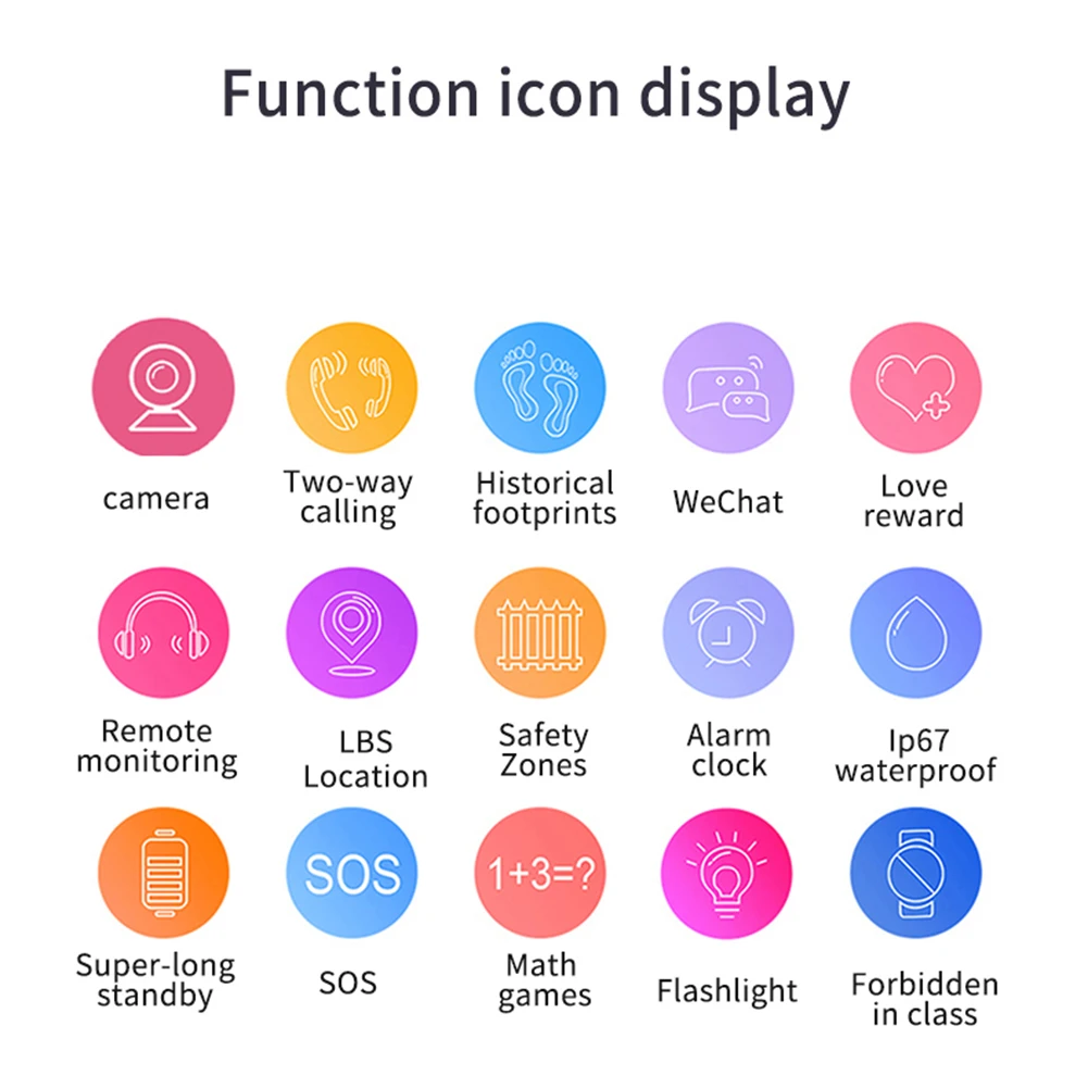 * 1. Функция: мониторинг сердечного ритма, функция GPS, Siri, мониторинг сна, удаленная фотография, Bluetooth музыка, анти-потеря, поиск мобильных телефонов, напоминания о погоде и т. д., позиционирование LBS, воспроизведение треков, электронный забор, SOS один клик помощь, Возьмите телефон, удаленную фотографию, голосовой Интерком.