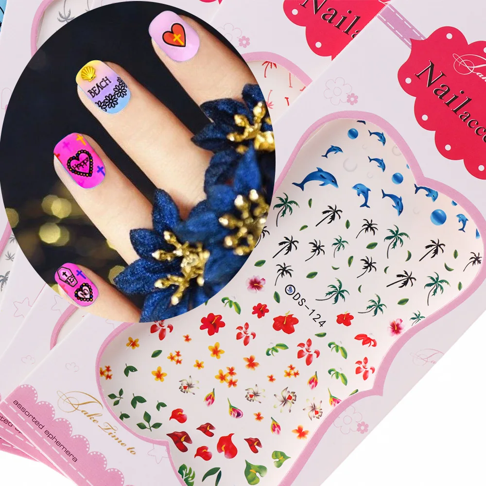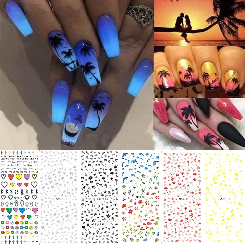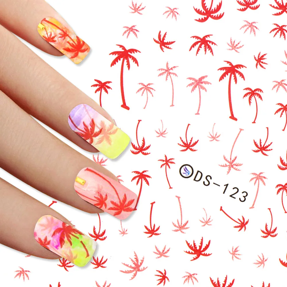 Лидер продаж, наклейки для ногтей в тропическом стиле, летние наклейки для ногтей цветы дельфинов из пальмового дерева, переводная бумага для воды, сделай сам, декор для ногтей