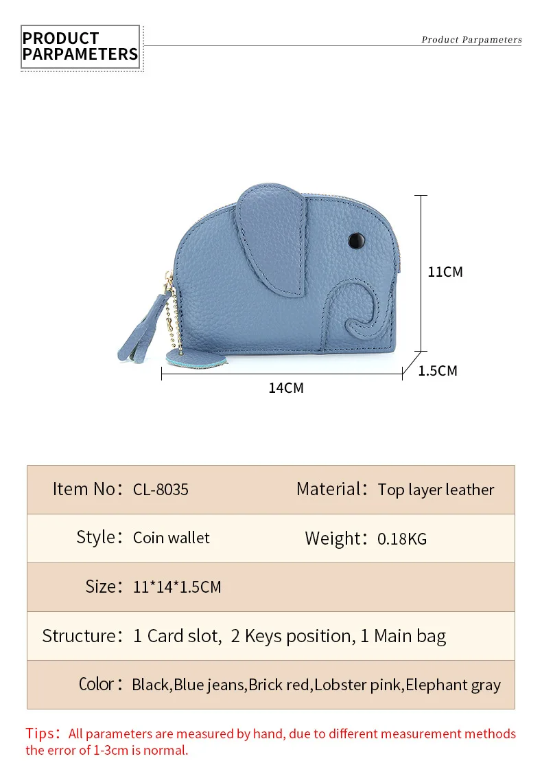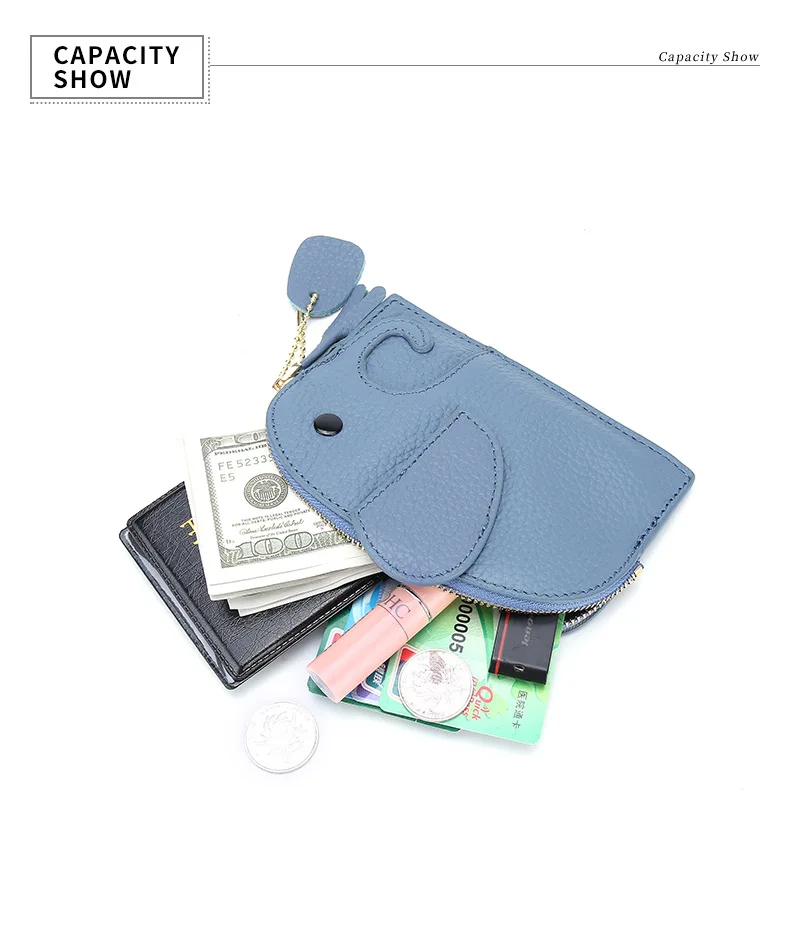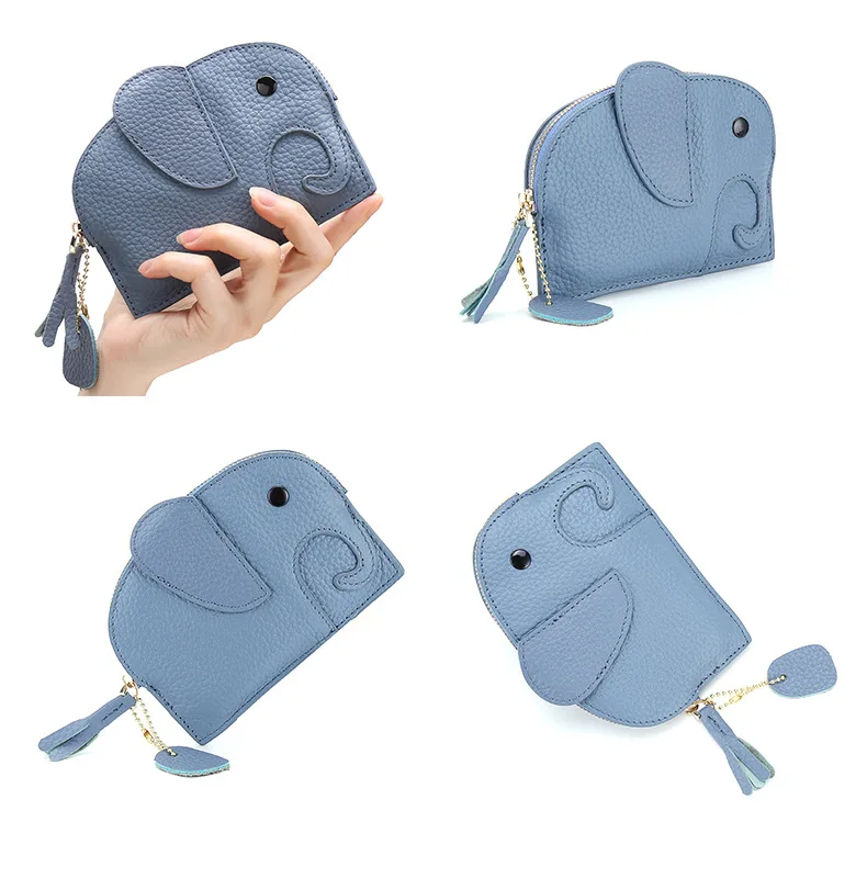 Женский кошелек в японском стиле с отделением для монет и карт из натуральной кожи с изображением слона, креативная мини-сумка для монет, женские милые кошелькиОписание товара