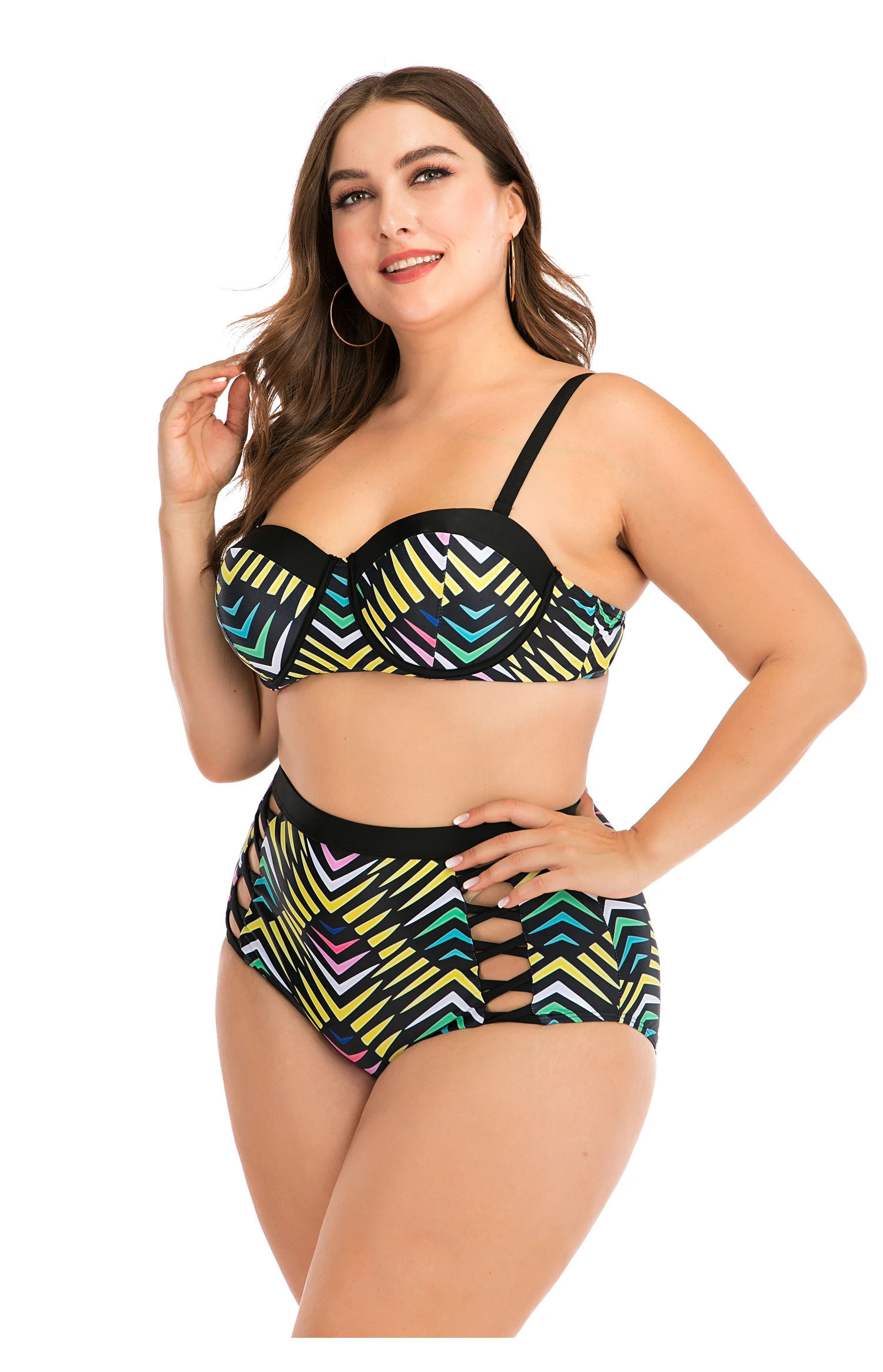 Женский купальный костюм из двух частей, сексуальный купальник-бикини, большие чашечки с L-4XL, пляжная одежда с талией, большие размеры 2020