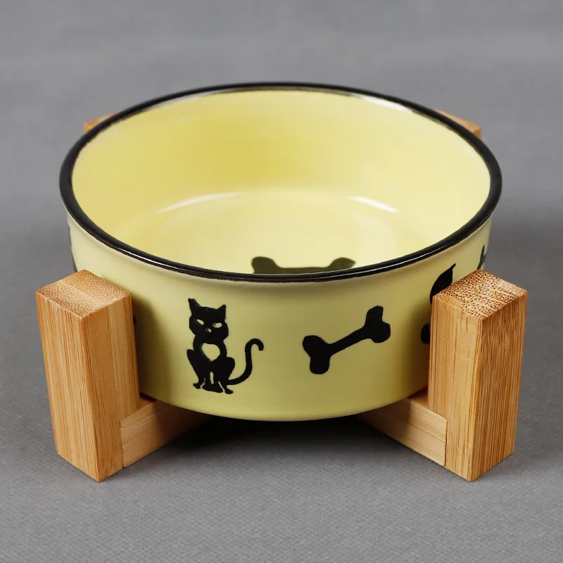 Нескользящие миски для кошек, керамические миски с твердой деревянной подставкой, миски для домашних животных и воды для кошек, кормушки для собак, миски для кошек, товары для домашних животных 10E