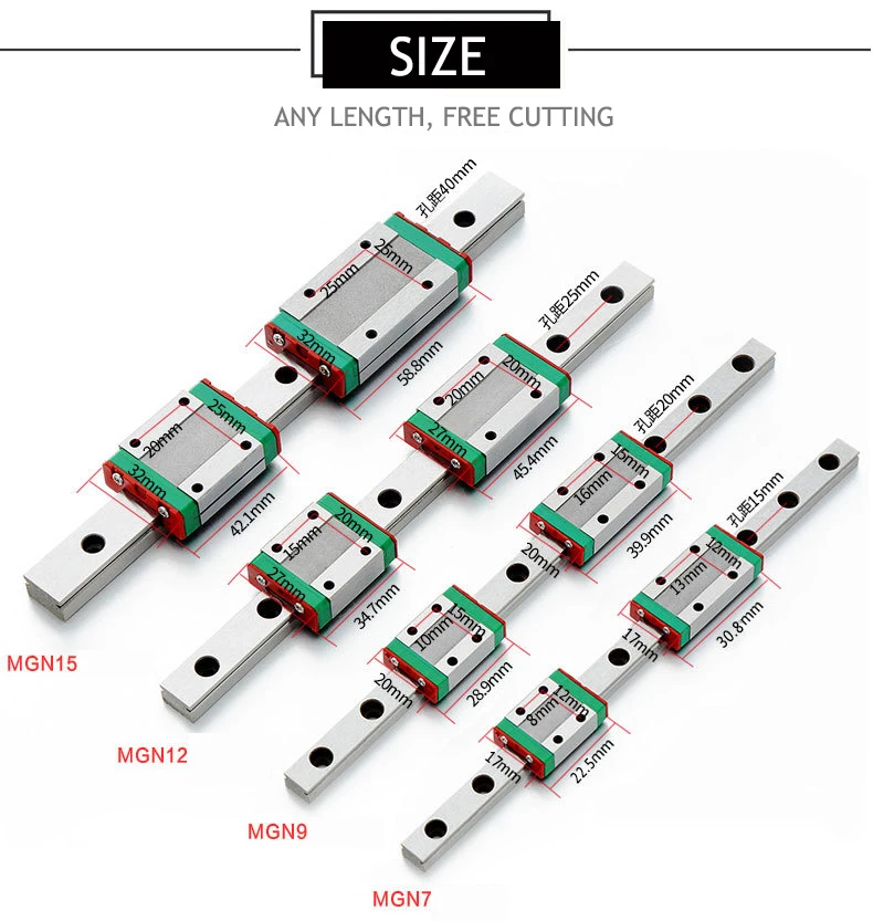 У нас есть линейные направительные рельсы mgn7c mgn7h mgn9c mgn9h mgn12c mgn12h mgn15c mgn15h, и по размеру 100 мм, 150 мм, 200 мм, 250 мм, 300 мм, 350 мм, 400 мм, 450 мм, 500 мм, 600 мм, 650 мм, 700 мм, 800 мм, если вы хотите другой размер или любой вопрос, пожалуйста, не стесняйтесь связаться со мной. Я отвечу за это. Пожалуйста, поверьте, что я дам вам удовлетворительный ответ.