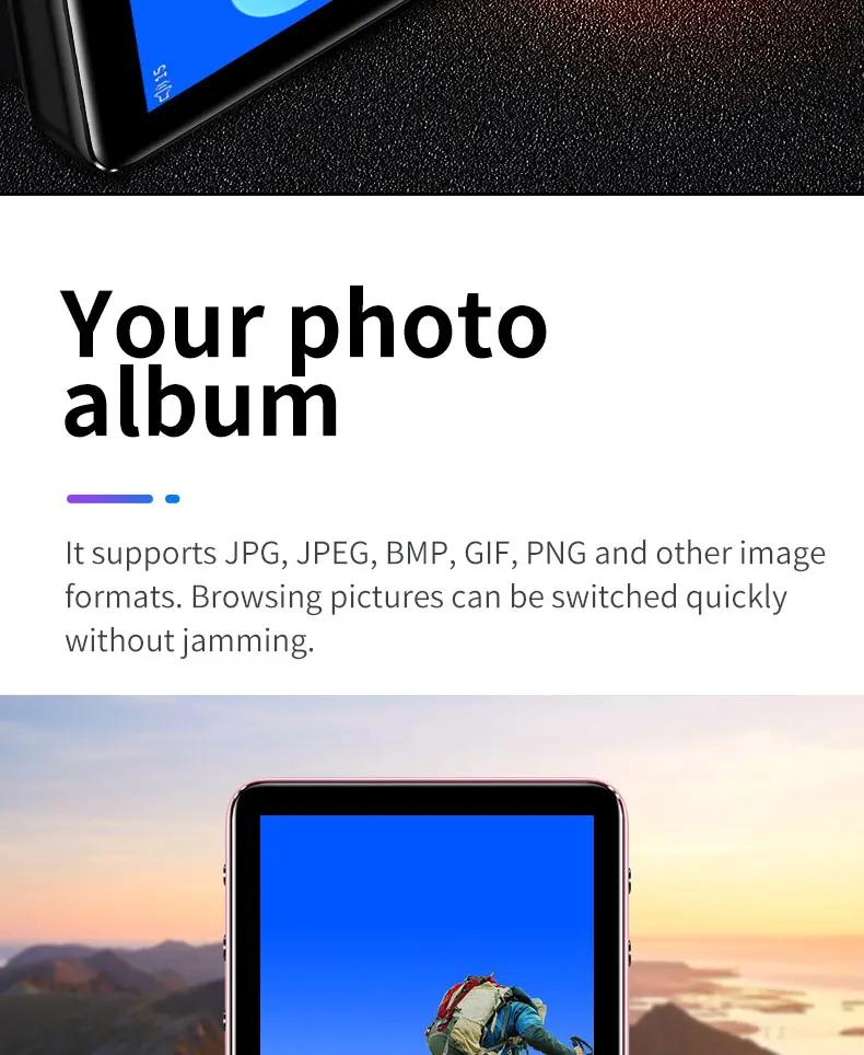 Описание памяти: 8 г = встроенный 8 г 40 г = Встроенная TF-карта 8 ГБ + 32 ГБ 64G = Встроенная TF-карта 8 ГБ + 64 ГБ 128 г = Встроенная TF-карта 8 ГБ + 128 ГБ Корпус: корпус из магниевого сплава Дисплей: 3,0 дюйма Разрешение экрана: 800*480 Размеры: 83,4*49,3*12,8 мм Память: 8 г Воспроизведение музыкального фона: Поддержка Синхронизация лирики LRC: Поддержка Повтор на A-B: Поддержка Режим воспроизведения: повтор, одна игра, все петли Функция tf-карты: Поддержка макс. карты памяти 128 ГБ Воспроизведение переменной скорости: 8 раз переключение Видео: 1080P (1920x1080) Поддержка формата HD: RM, H.264, Xvid, Mpeg2 и т. Д. Разрешение 720P (1280x720) поддержка: HD видео ниже 720P, без преобразования формата, можно играть напрямую Громкоговоритель: Поддержка Функция Радио: поддержка Будильник: поддержка Секундомер: Поддержка Текстовое чтение: Формат TXT, поддержка закладок Аккумулятор: полимерный аккумулятор 800 мА Функция записи: Поддержка записи микрофона Время работы: 20-35 часов воспроизведения песни в режиме экономии экрана наушников. Видео воспроизводит в течение 3-5 часов. Язык: Поддержка 29 языков s. Английский, русский, итальянский, иврит, японский, корейский. Испанский. Немецкий и т. Д. Формат аудио: APE, AAC, FLAC, MP3, WMA, OGG. Посылка включает в себя: 1 mp3-плеер 1x проводные наушники 1x USB кабель 1x Руководство пользователя Пожалуйста, обратите внимание: bluetooth MP3-плеера не может соединяться с компьютерами и телефонами! Посылка, указанная выше, не входит в комплект. Примечание: освещение и различные дисплеи могут привести к тому, что цвет товара на картинке немного отличается от реального. Допускается погрешность в измерениях +/- 1-3 см.