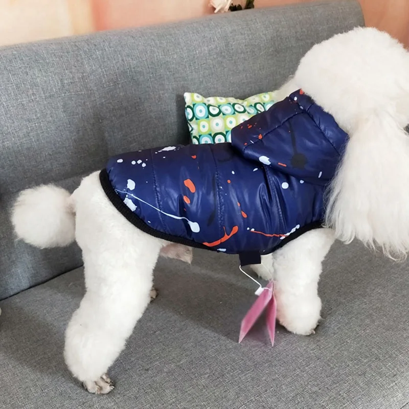 Костюм для холодной погоды для домашних животных; одежда с капюшоном; Водонепроницаемая утепленная Теплая Лыжная куртка с хлопковой подкладкой; толстовка с капюшоном