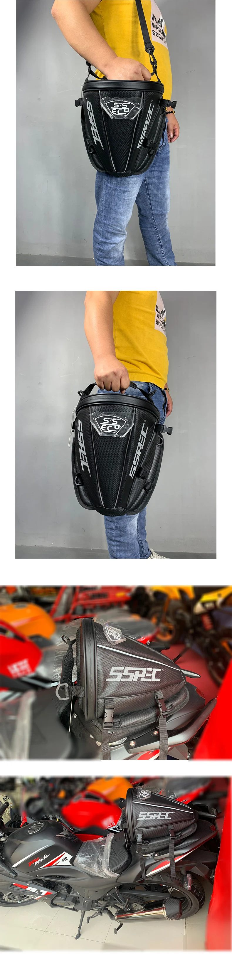 Бренд: SSPEC Модель: SCB-2014 Особенности: Изготовлен из высококачественного материала, износостойкий и прочный. Легко устанавливается, практично и удобно. Может хранить небольшие предметы, такие как перчатки, SLR камеры, мобильные телефоны, кошельки, минеральная вода и другие напитки. Подходит для большинства мотоциклов/грязевых велосипедов. Характеристики: Материал: ткань Оксфорд; Кожа из углеродного волокна Размер: 29*25*19 см Цвет: черный Посылка включает в себя: 1 задняя Сумка для мотоцикла Примечания: 1. Допускается погрешность в 1-3 см. 2. Цвет фактического товара может незначительно отличаться от приведенного выше изображения из-за различий в экране компьютера, спасибо за понимание.