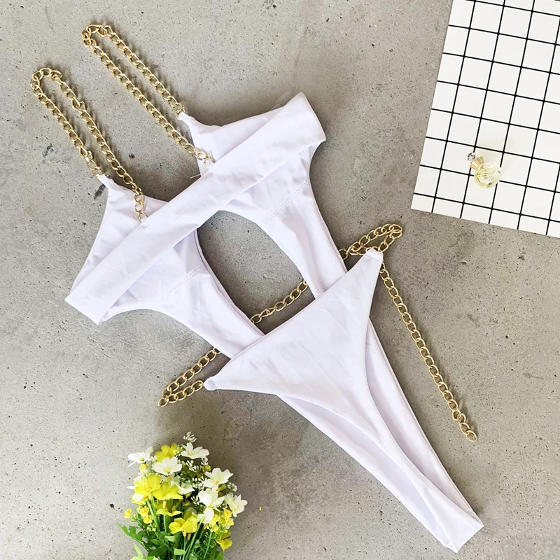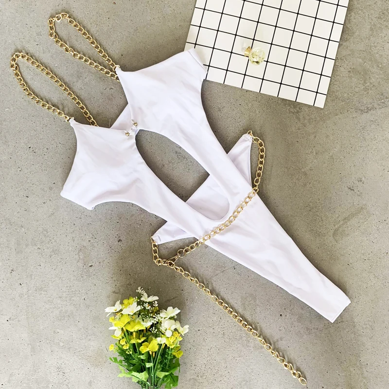 Сексуальный цельный купальник с цепочкой, женский бикини с высокой посадкой, 2020, женский купальник с вырезами, монокини, черный, белый, Цельный боди