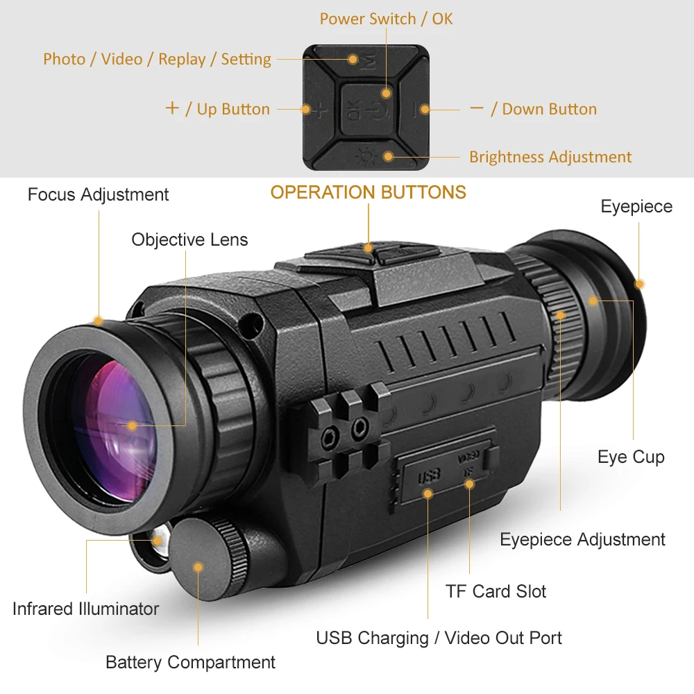 Этот монокуляр ночного видения компактный и легкий, идеально подходит для охоты, наблюдения за животными, охоты и других видов активного отдыха ночью.