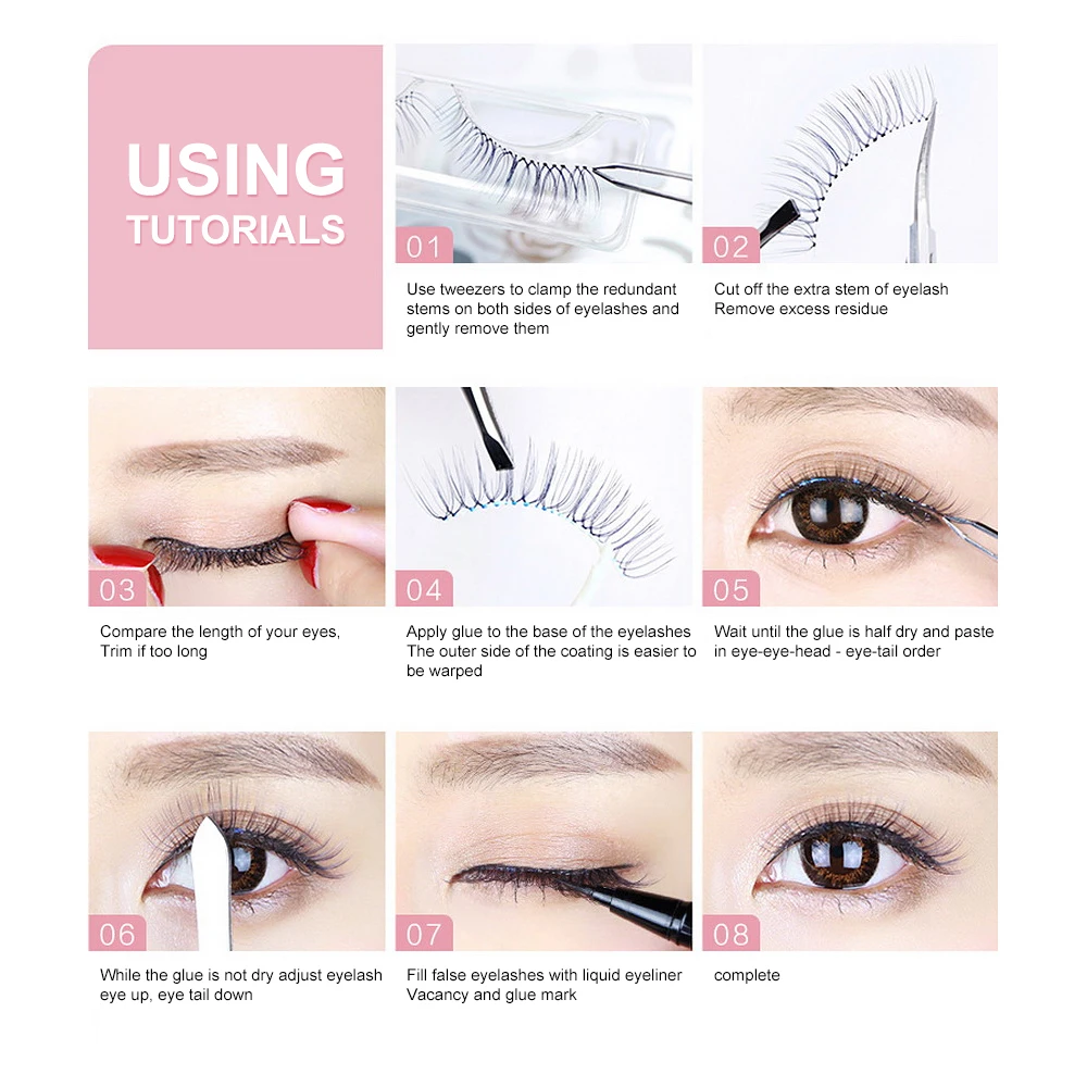 -Очень мягкие и удобные в носке. -Они могут быть удалены с помощью средства для снятия макияжа с глаз. -Может быть повторно использован при применении с осторожностью. -Тип: Набор накладных ресниц -Стиль: Модный -Материал:Высший сорт Синтетические волокна -Материал для ресниц: пластик Как использовать -Аккуратно снимите ресницы с чехла пинцетом -Сравните Накладные ресницы с длиной линии вокруг глаз, обрежьте подходящую длину и ширину -Добавьте клей вдоль корня накладных ресниц с хлопковым бутоном -Удерживайте ресницы на корне ваших натуральных ресниц давлением При необходимости нанесите тени для век или подводку для глаз, чтобы ваша линия глаз выглядела более естественно В комплект входит: -5 пар накладных ресниц (стиль как на картинке)