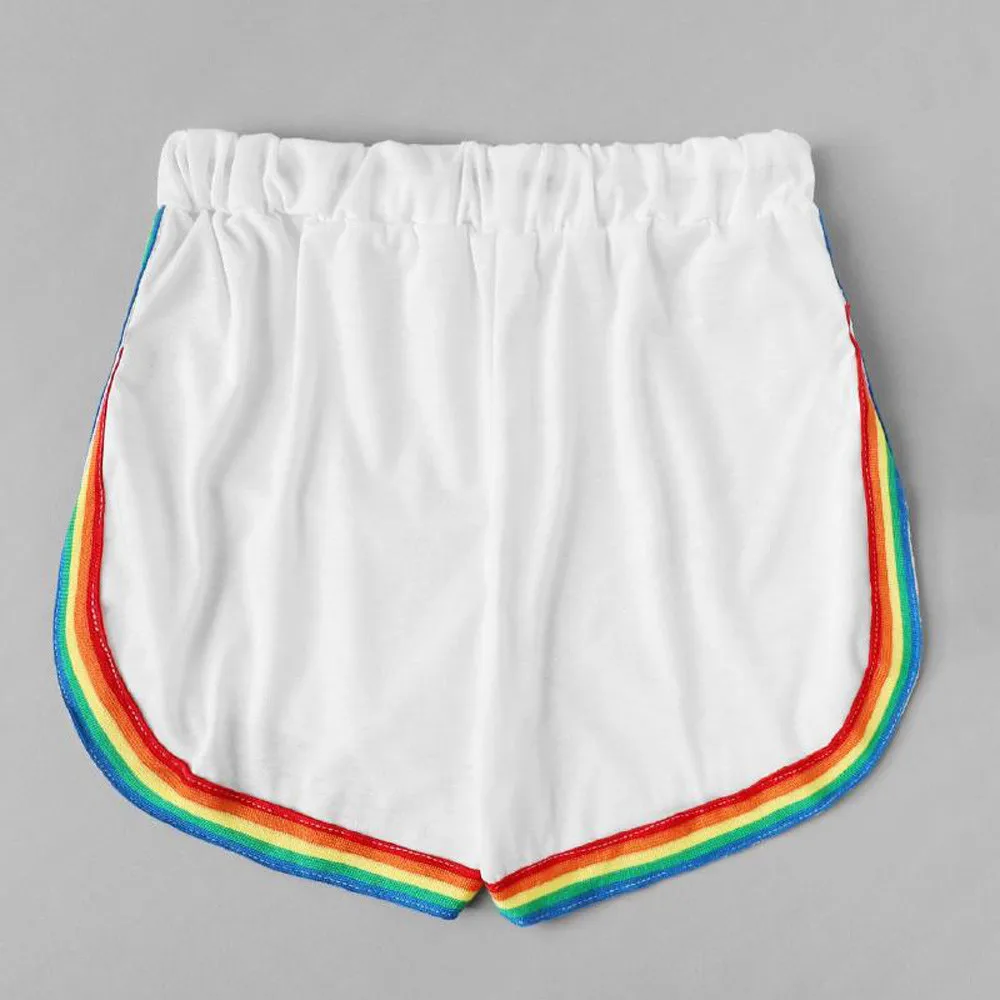 Женские повседневные спортивные эластичные шорты с радужным принтом; Пляжные шорты; Брюки