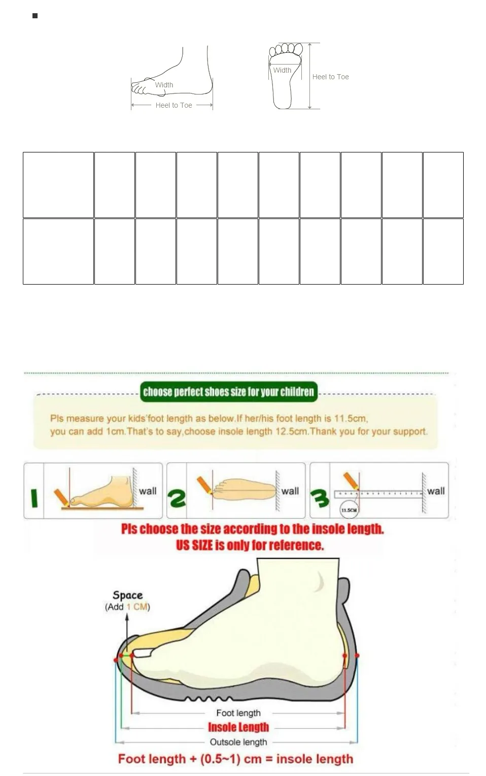 Примечание: Пожалуйста, выберите размер в соответствии с длиной Вашей стопы.