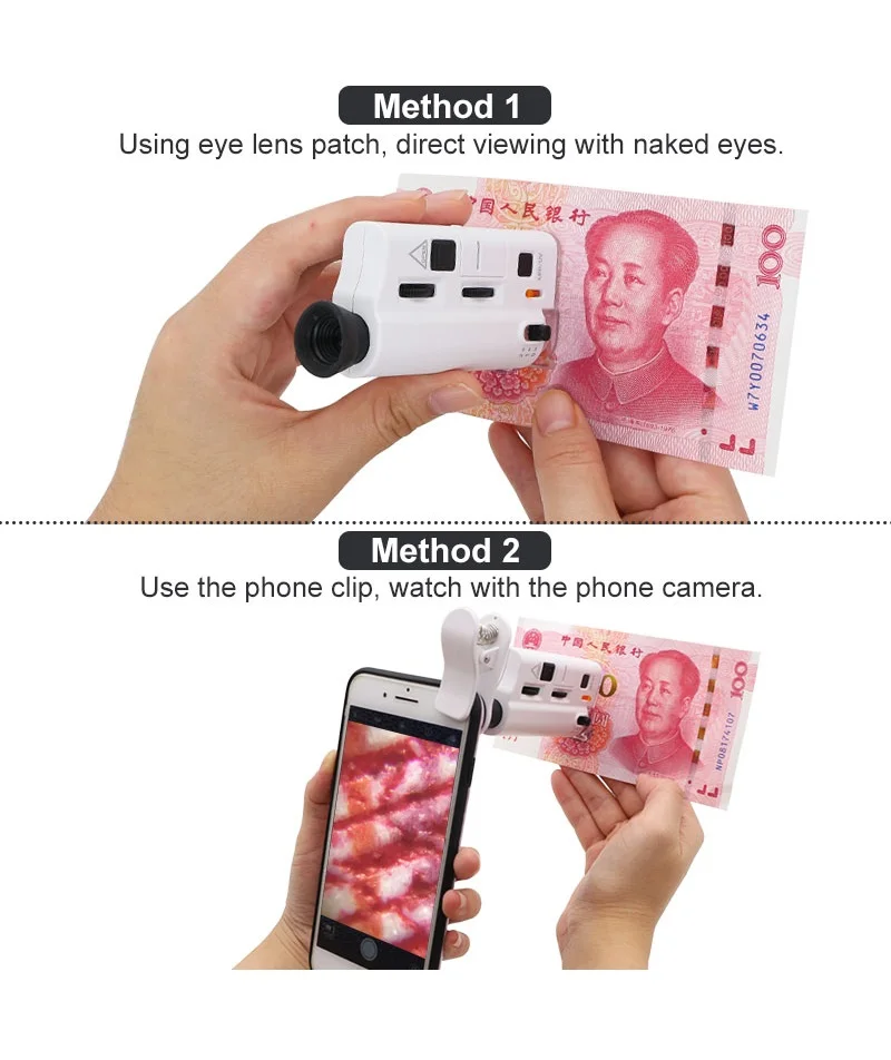 60X-100X мини микроскоп портативный универсальный клип микроскоп смартфон микроскоп увеличительное стекло с Светодиодный УФ световые лупы