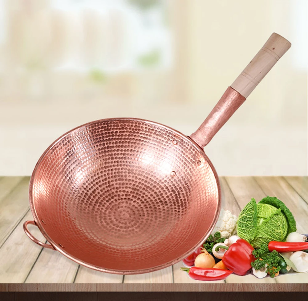 Медный вок ручной работы, бытовой утолщенный ВОК, медный горячий горшок, медный коммерческий медный суповый горшок с двумя ушами