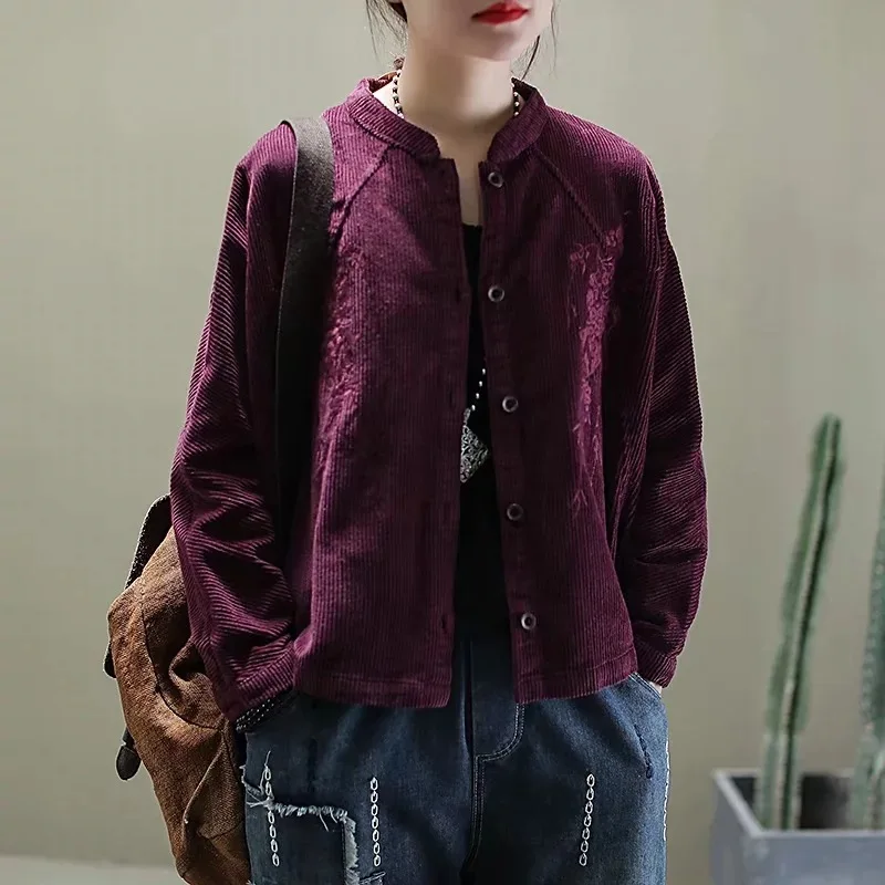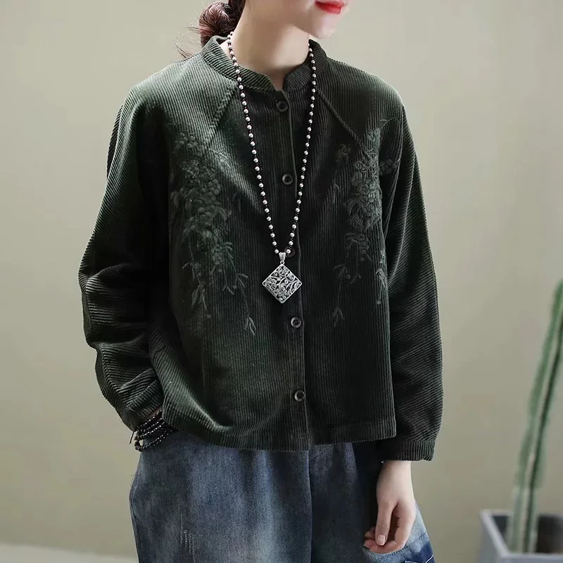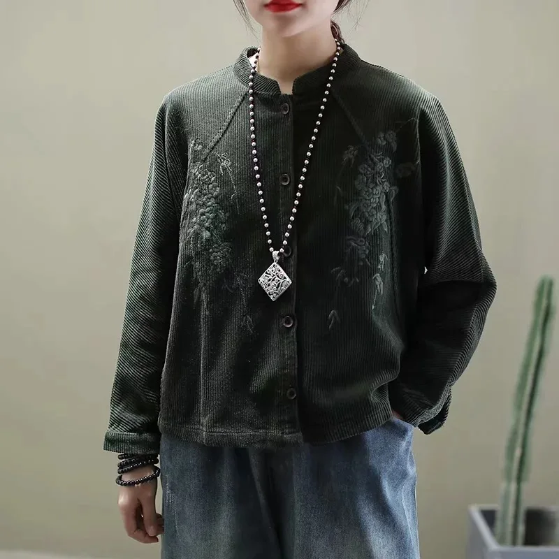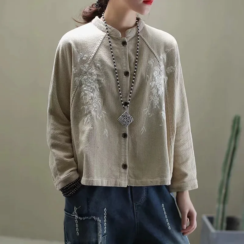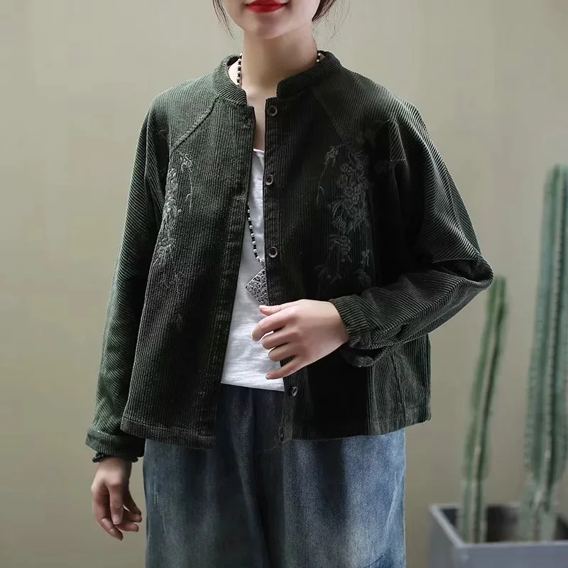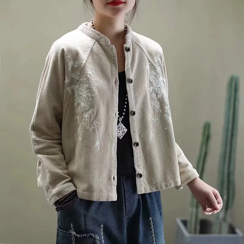 Китайские весенние модные вельветовые куртки с вышивкой