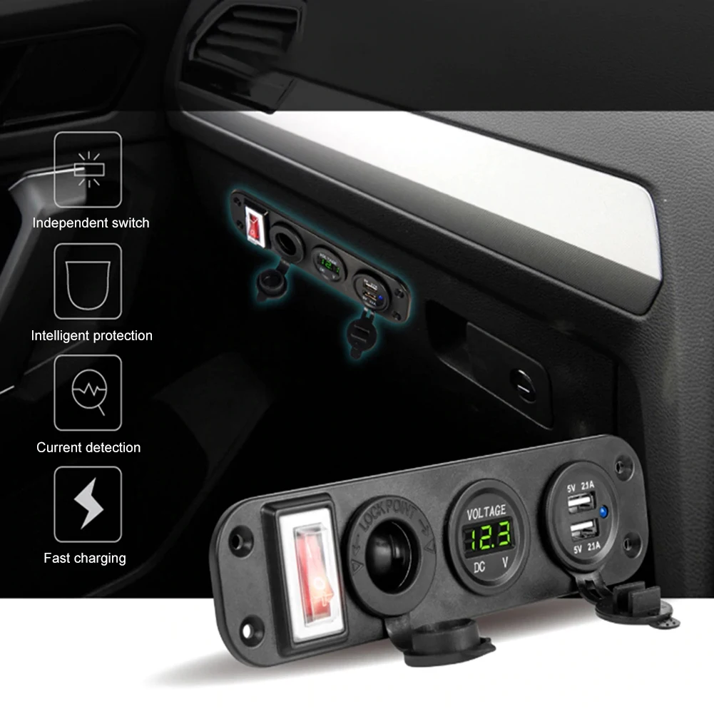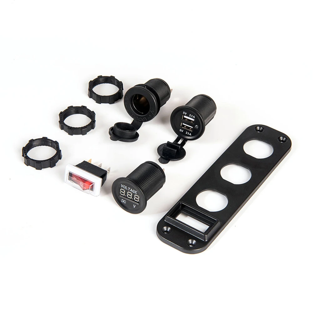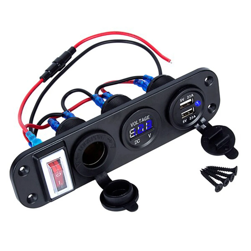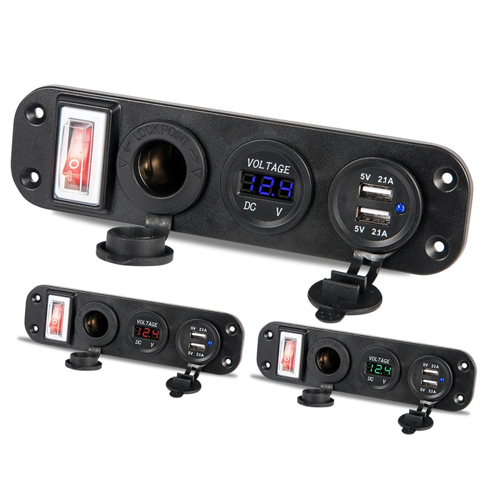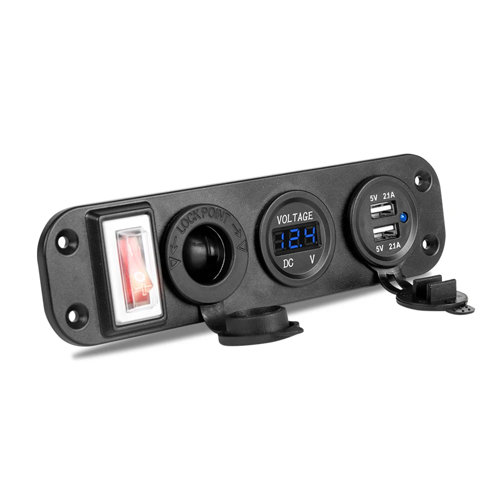 * 1. Панель с четырьмя отверстиями DIY, включая разъем прикуривателя, дисплей напряжения, двойной разъем USB, тумблер, общий для автомобилей 12 В, мотоциклов, квадроциклов, лодок, автомобилей, лодок.