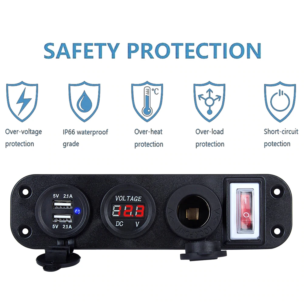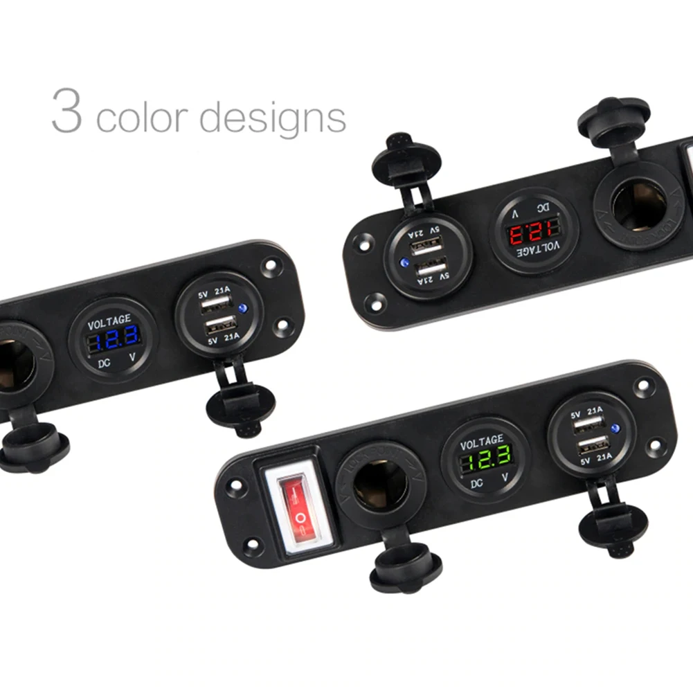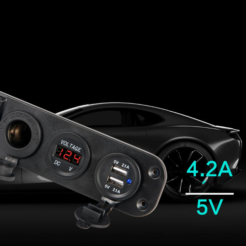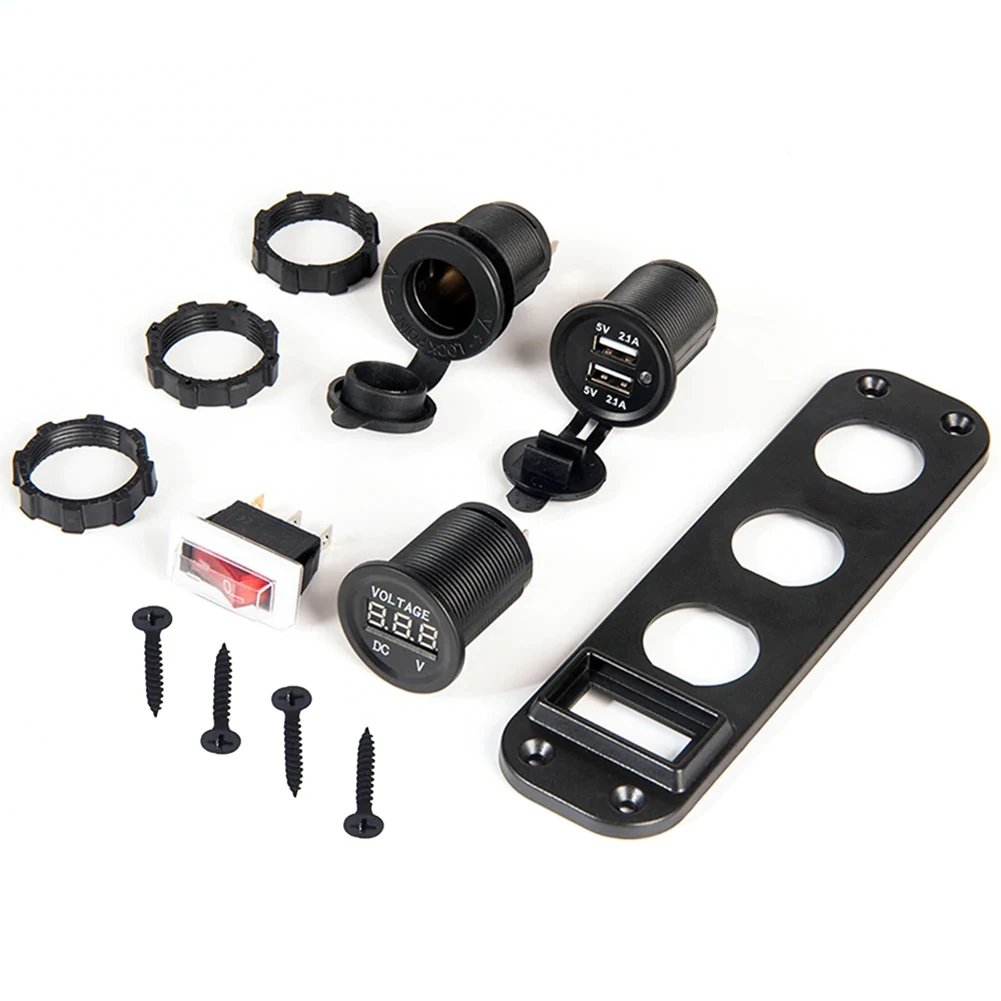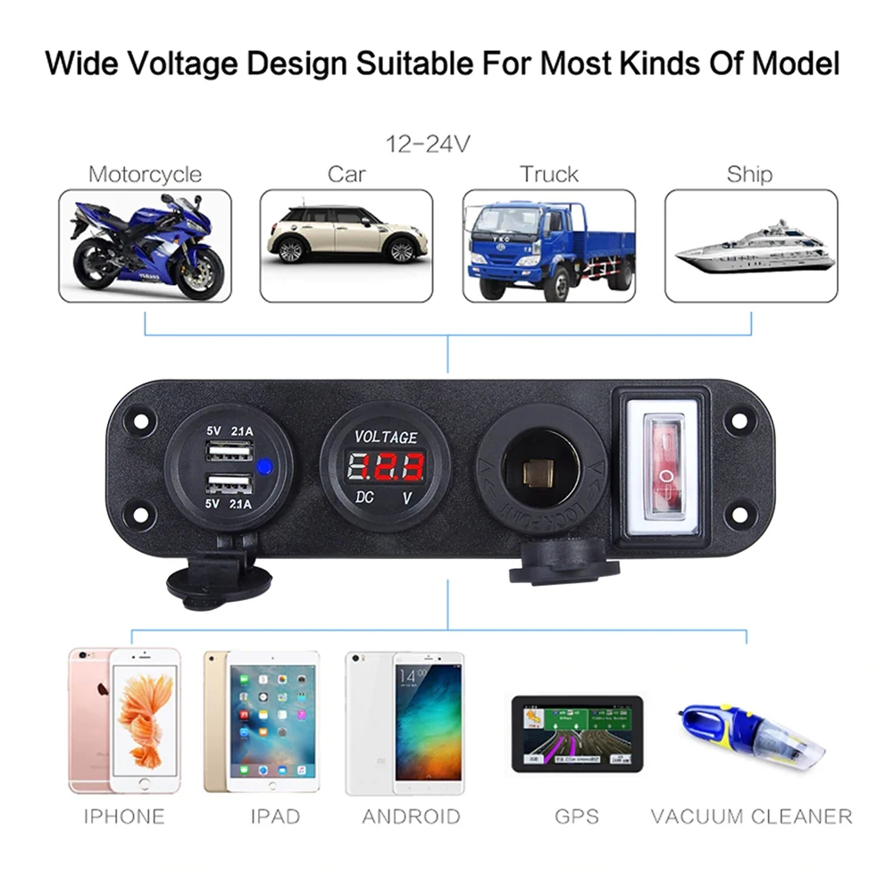 * 1. Панель с четырьмя отверстиями DIY, включая разъем прикуривателя, дисплей напряжения, двойной разъем USB, тумблер, общий для автомобилей 12 В, мотоциклов, квадроциклов, лодок, автомобилей, лодок.