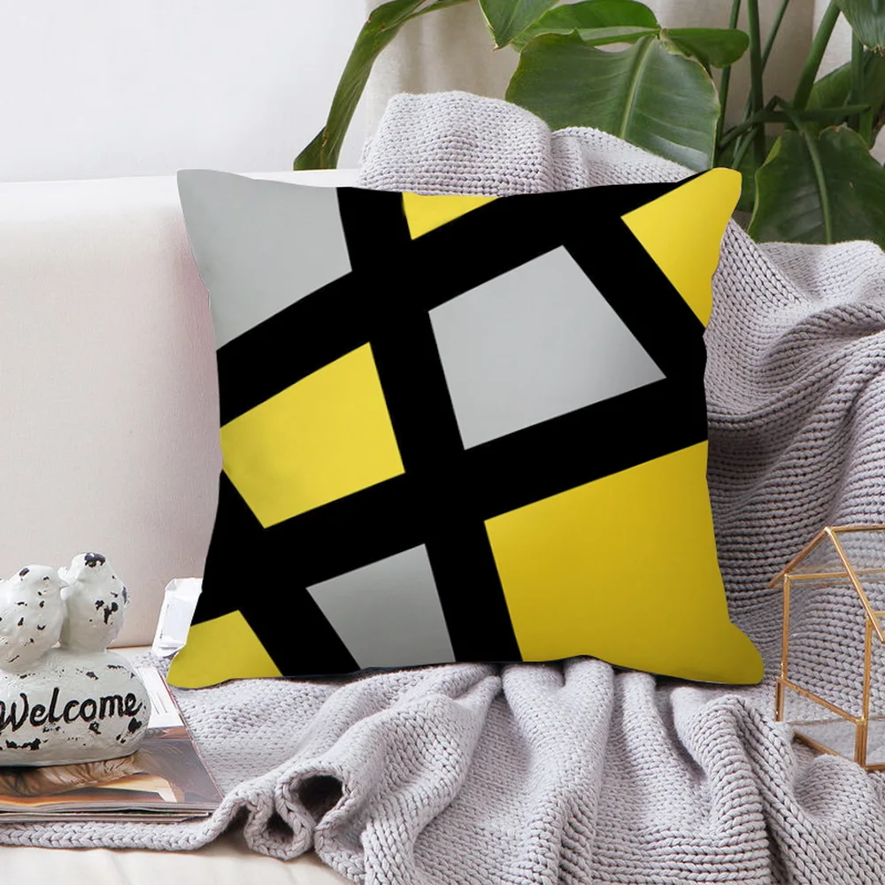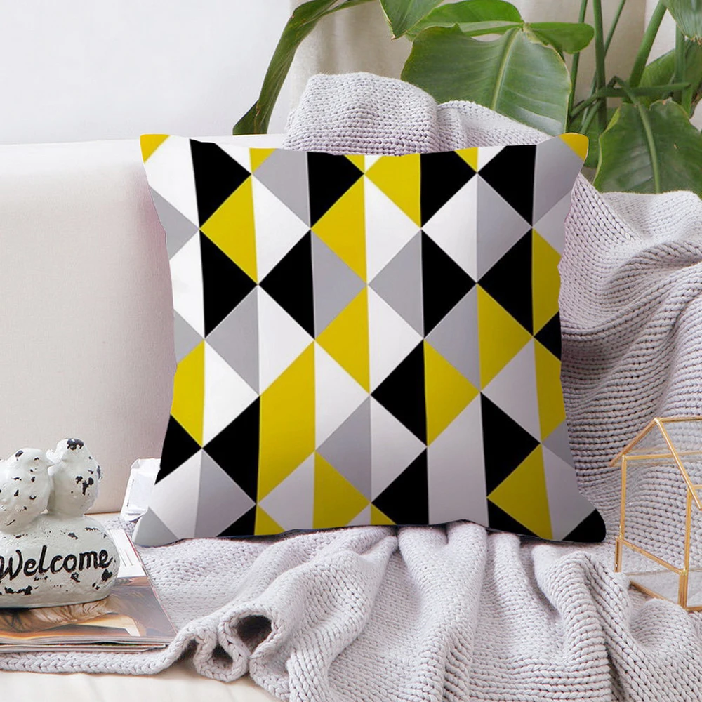 Характеристика Наволочка для подушки с желтым принтом для домашнего декора, рисунок только с одной стороны, с другой стороны пустой, предоставляя вам возможность сделать своими руками Модный чехол для подушки с геометрическим принтом, мягкий и удобный для использования Наволочка из прочной полиэфирной ткани и уникальный дизайн создают стильный комфорт на диване, диване, полу, скамейке или кровати