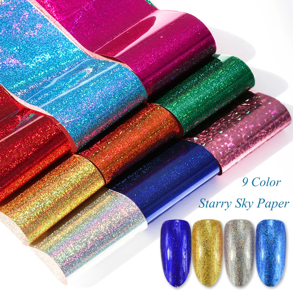 Этот набор включает в себя 20 листов наклейки из фольги для ногтей в 9 различных цветах