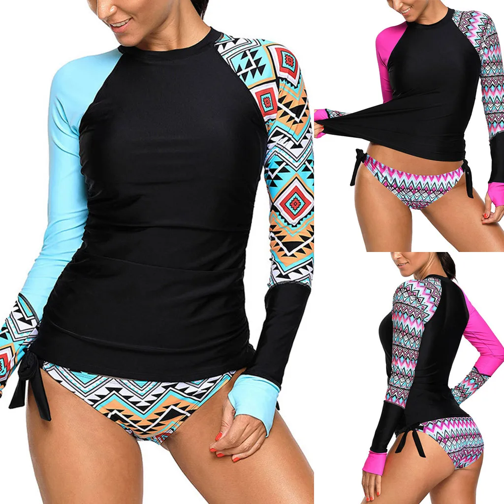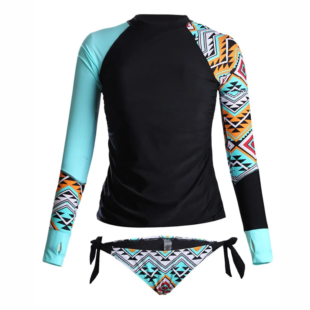Женский топ с длинным рукавом с УФ защитой от солнца UPF 50 + комплект купальников из 2 предметов