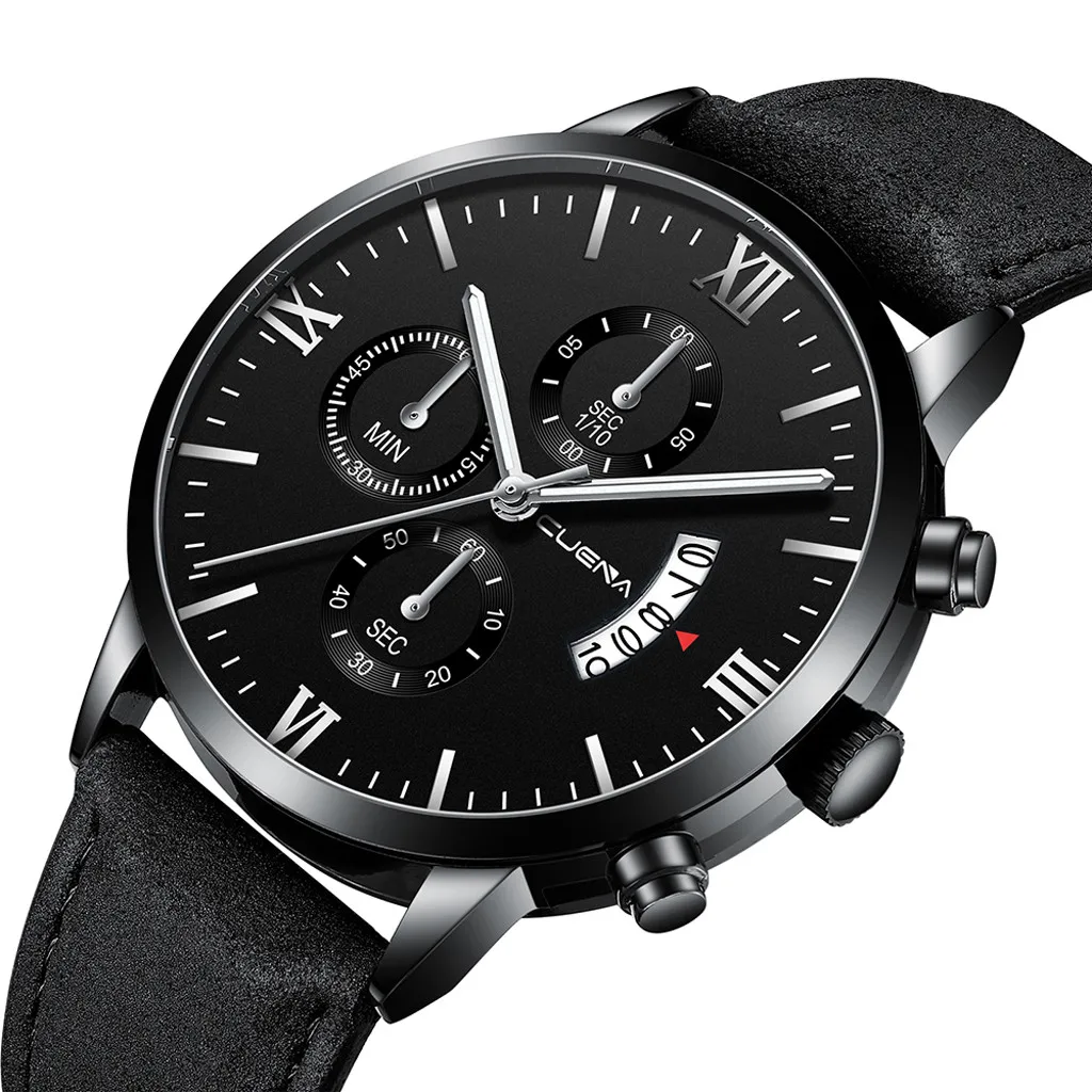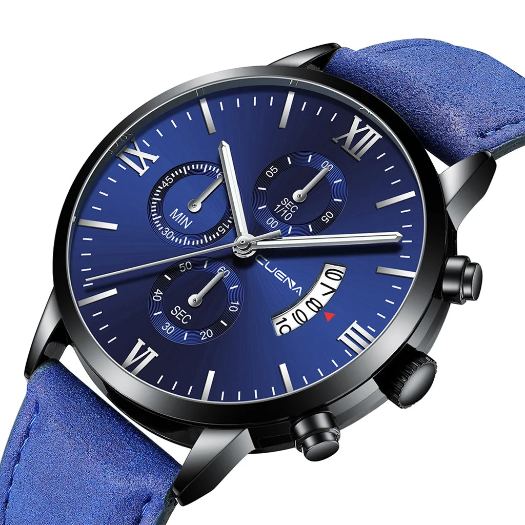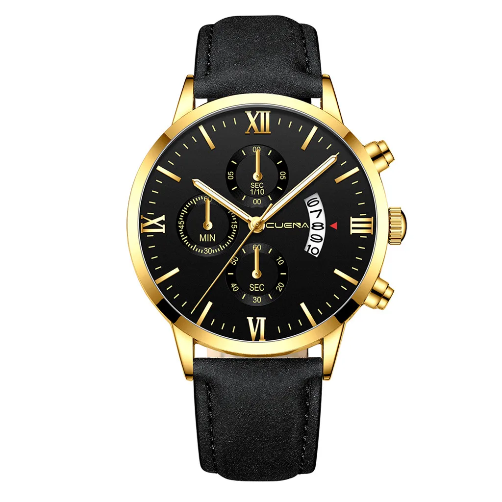 Модные часы мужские кожаный браслет кварцевые наручные часы