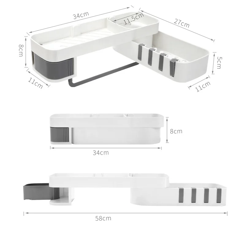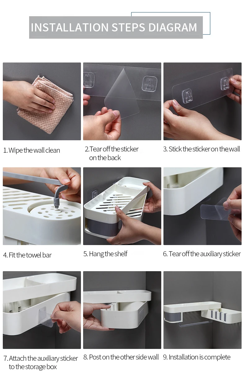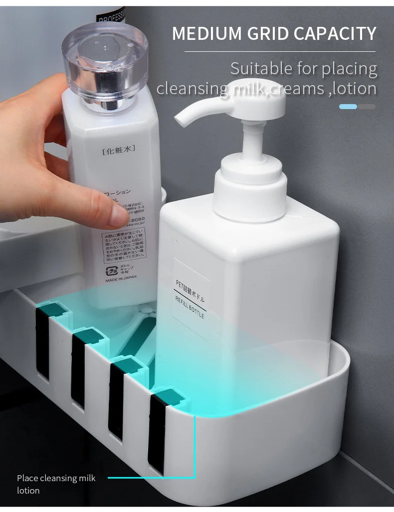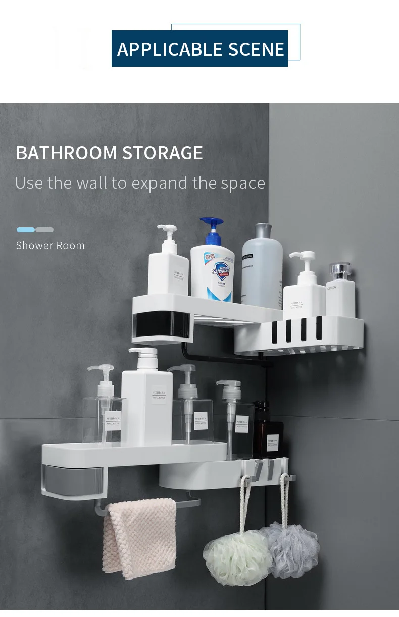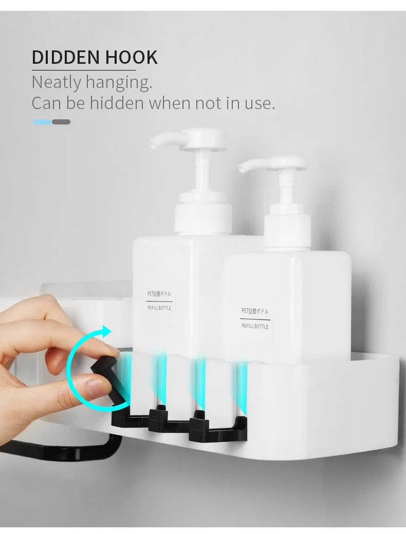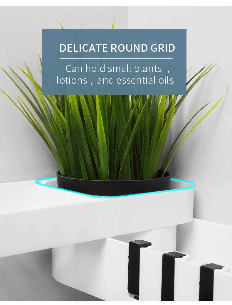 1. Настенный Стойка-это настенная, не требующая перфорации установка, которая должна быть прикреплена только к стене для легкой установки. 2. Вращающаяся стойка Стойка может поворачиваться на 180 градусов, без ограничения угла, а прямой угол может быть установлен по желанию. Легко установить различные углы стены. 3. Чистый и аккуратный Стойка имеет полый резной дизайн, чтобы помочь слить базовую пластину и больше не накапливать воду, попрощайтесь с размножением бактерий. 4. Скрытый крючок Есть 4 крючка на краю стойки, которые можно использовать для подвешивания полотенец, их можно сложить и спрятать, когда они не используются. 5. Кассеты В стойку входит кассета, ювелирные изделия скрыты и не промокают, и их удобно снимать, очень интимный дизайн. 6. Секретное хранилище Есть 3 вида различной емкости, большая емкость Подходит для геля и шампуня для душа с увеличительным флаконом, круглая сетка для небольших растений и эфирных масел, средняя емкость для очищающих средств, лосьонов и многого другого. 7. Применение Стойка подходит для хранения в ванной, кухонного хранения, Хранения Туалетных принадлежностей. Стойка подходит для хранения в ванной комнате и проста в использовании со стеной. Подходит для стирки, чистки, одевания. Подходит для хранения на кухне, масла и соевого уксуса, чтобы помочь вам готовить вкусно.