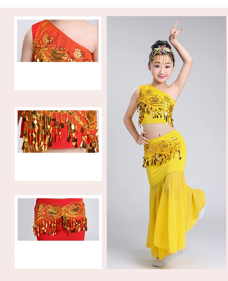 Детский костюм для танца живота, детская национальная индийская Одежда для танцев, Школьное сари для девочек, Танцевальные Костюмы Болливуда, танцевальный костюм павлина
