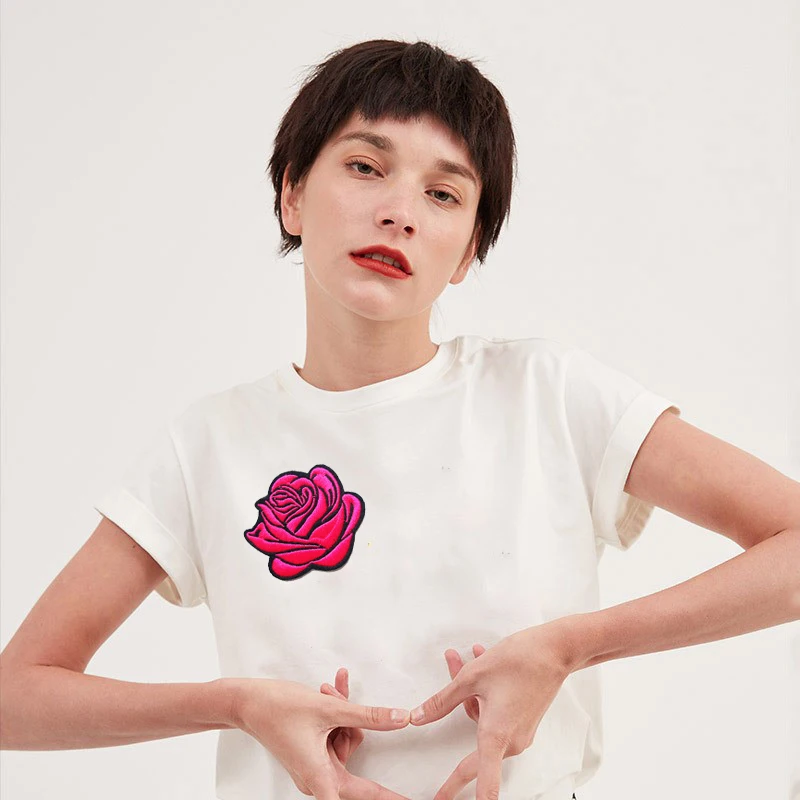 ZOTOONE Cute Flower Patch Iron on Rose Stripes Stickers for Clothes T-shirt DIY Badge Applique Embroidery Sew on Note Patches I