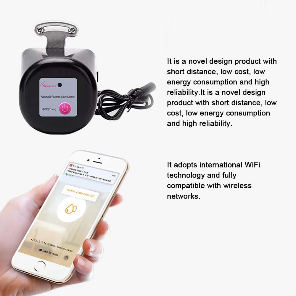 Интеллигентая (ый) беспроводной клапан манипулятор использует 2,4 ГГц Wi-Fi решение исходя из самую последнюю радиочастотная технологии. Это новый дизайнерский продукт с коротким расстоянием, низкой стоимостью, низким энергопотреблением и высокой надежностью. Он использует международную технологию Wi-Fi и полностью совместим с беспроводными сетями. Может использоваться в качестве точки реле сигнала и других устройств. Забывая закрыть клапан водопроводной воды при выходе? Не волнуйтесь, и вы можете управлять им через ваш смартфон.