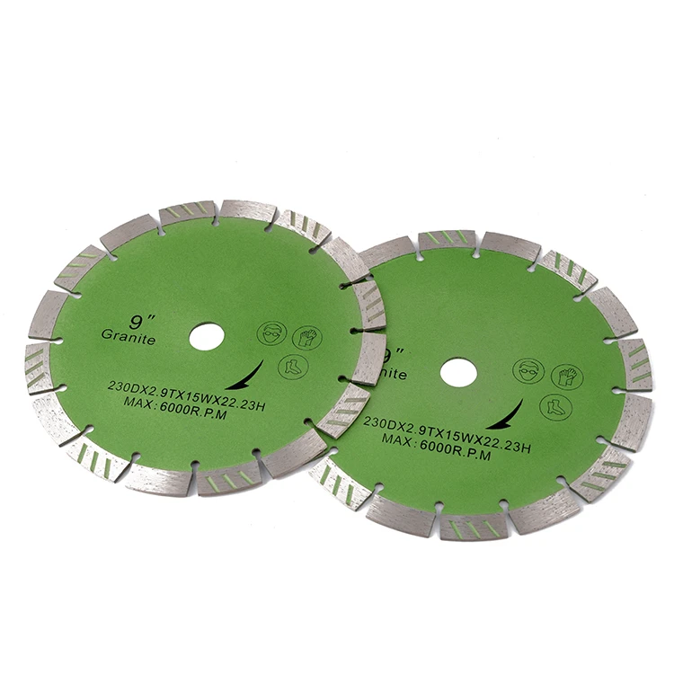 Название продукта: 4,5 дюймов D115mm Горячая Пресс спеченный турбо Сегментированный алмазный отрезной диск Номер товара: DB41 Диаметр: 4,5 дюймов (D115mm) Внутреннее отверстие: 20 мм/22,23 мм Тип сегмента: горячий пресс спеченный турбо Сегментированный Тип режущего диска Размеры сегментов: 12 мм высота/8 турбо сегментов Применение: бетон, кирпич, блок, плитка, камень, гранит, мрамор, каменная кладка и строительные материалы. Машина: угловая шлифовальная машина, ручная циркулярная пила. Процесс: Спеченный горячий прессованный Особенности: 1.100% Высокое качество и абсолютно новый. 2. Алмазное режущее дисковое лезвие сегментированного углового шлифовального диска для кладки. 3. Алмазная пила общего назначения подходит для резки широкого ассортимента кирпичей и широкого ассортимента готовых изделий. 4. Идея для влажной/сухой резки: бетона, каменной кладки, камня, асфальта, втягивания и гранита. 5. Отличная производительность резки. 6. Длительный срок службы. Преимущества: 1. Гладкая и быстрая резка без сколов 2. Длительный срок службы и стабильная производительность 3. Конкурентоспособная цена и превосходное качество 4. Безопасная посылка и быстрая доставка