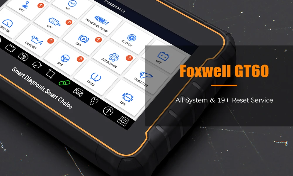 GT60 - это полнофункциональный диагностический инструмент для планшетов на базе Android. GT60 может быстро и эффективно сканировать системы автомобиля. Он включает в себя отличные функции, такие как данные в реальном времени и сервисные функции, поддержку 19 сброса.
