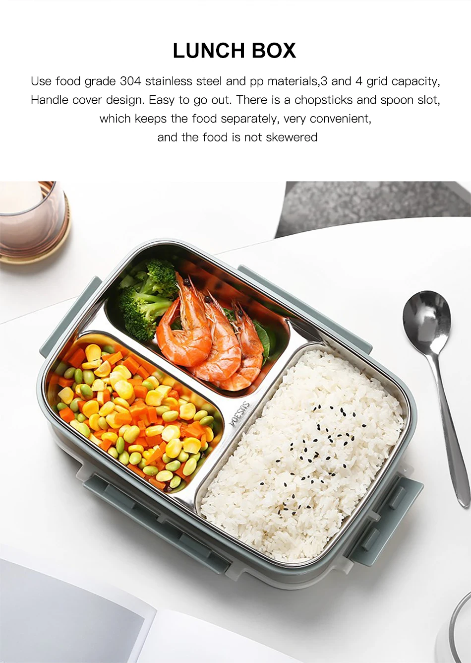 ONEUP Портативный Ланч-бокс из нержавеющей стали 304 Bento с столовыми приборами герметичный контейнер для еды большой емкости
