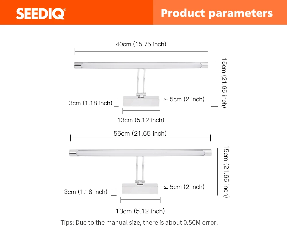 Современный светодиодный настенный светильник для ванной комнаты, зеркальный светильник 8 Вт 40 см 12 Вт 55 см AC 90-260 В, бра, настенный светильник для спальни, туалетный светильник, светильники серебристого цветаБесплатная доставка