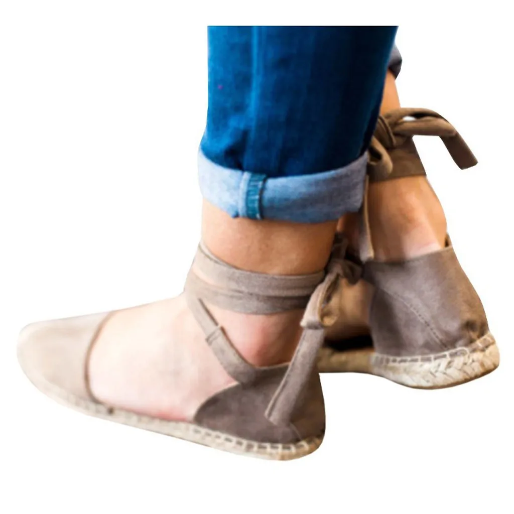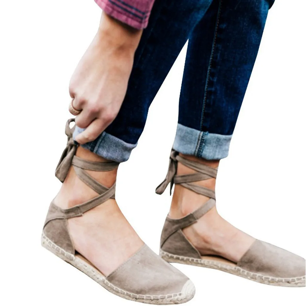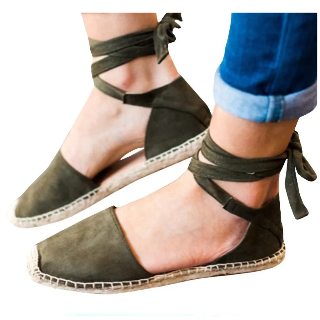 Женские эспадрильи на плоской подошве со шнуровкой; Летние сандалии для отдыха на массивном каблуке; Обувь с ремешком