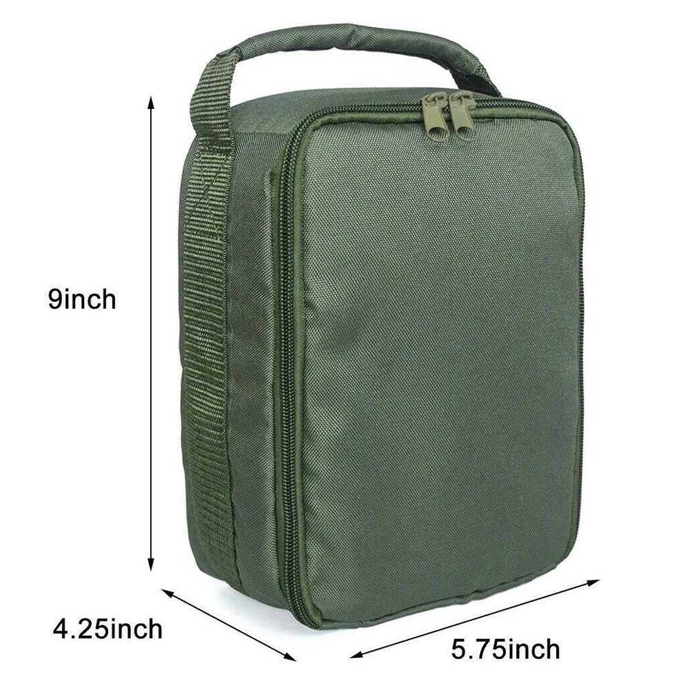 Material: 600D Oxford cloth Color: Army Green Size: 23*14.5*10.8cm (9*5.75*4.25in) Packing list: 1* Fishing tackle bag Reminder: 1. All pictures are professionally color-coded, but due to the different ambient light and different display device settings, there may be some deviations between the pictures you see and the items themselves. Please understand. 2. The data is measured manually, there may be some deviation, but it does not affect the use.