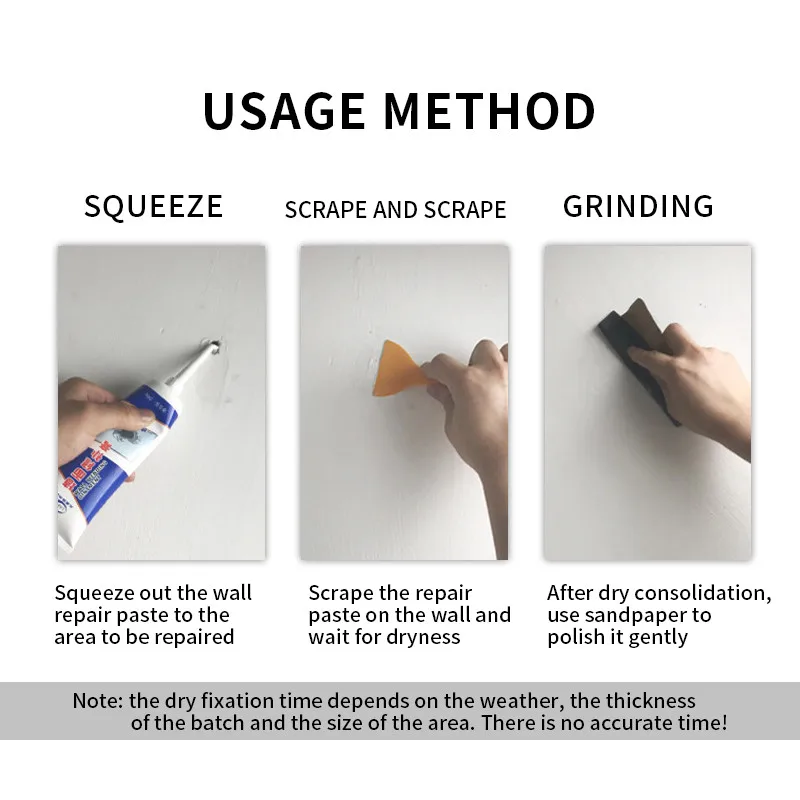 <Применение: Широко используется для восстановления повреждений белой стены, трещин, царапин, пустой кожи, отверстий для ногтей и многого другого.