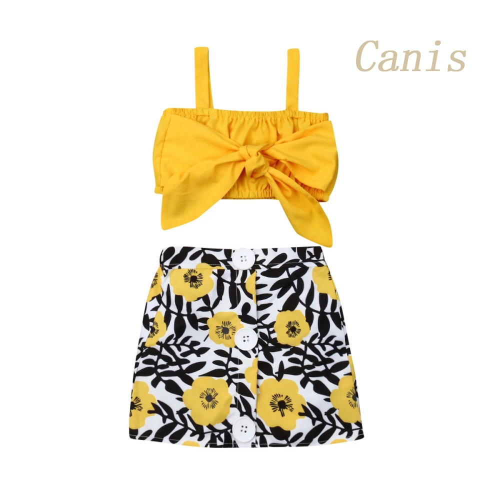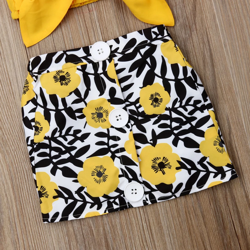 Новинка, модные детские топы с цветочным принтом для маленьких девочек + юбка, наряды!